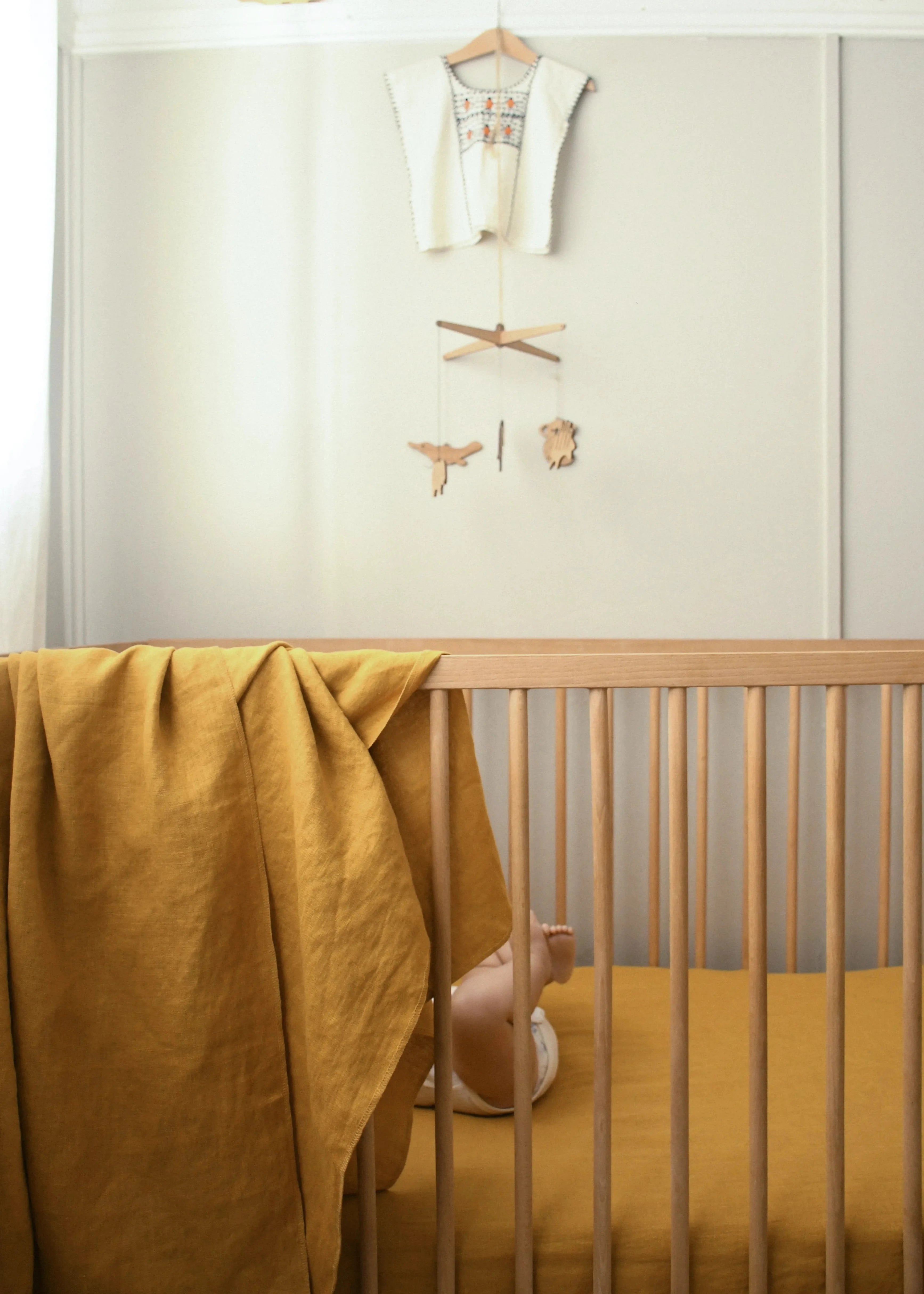 100% Hemp Bed Linen • Baby Cot Fitted Sheet Chai