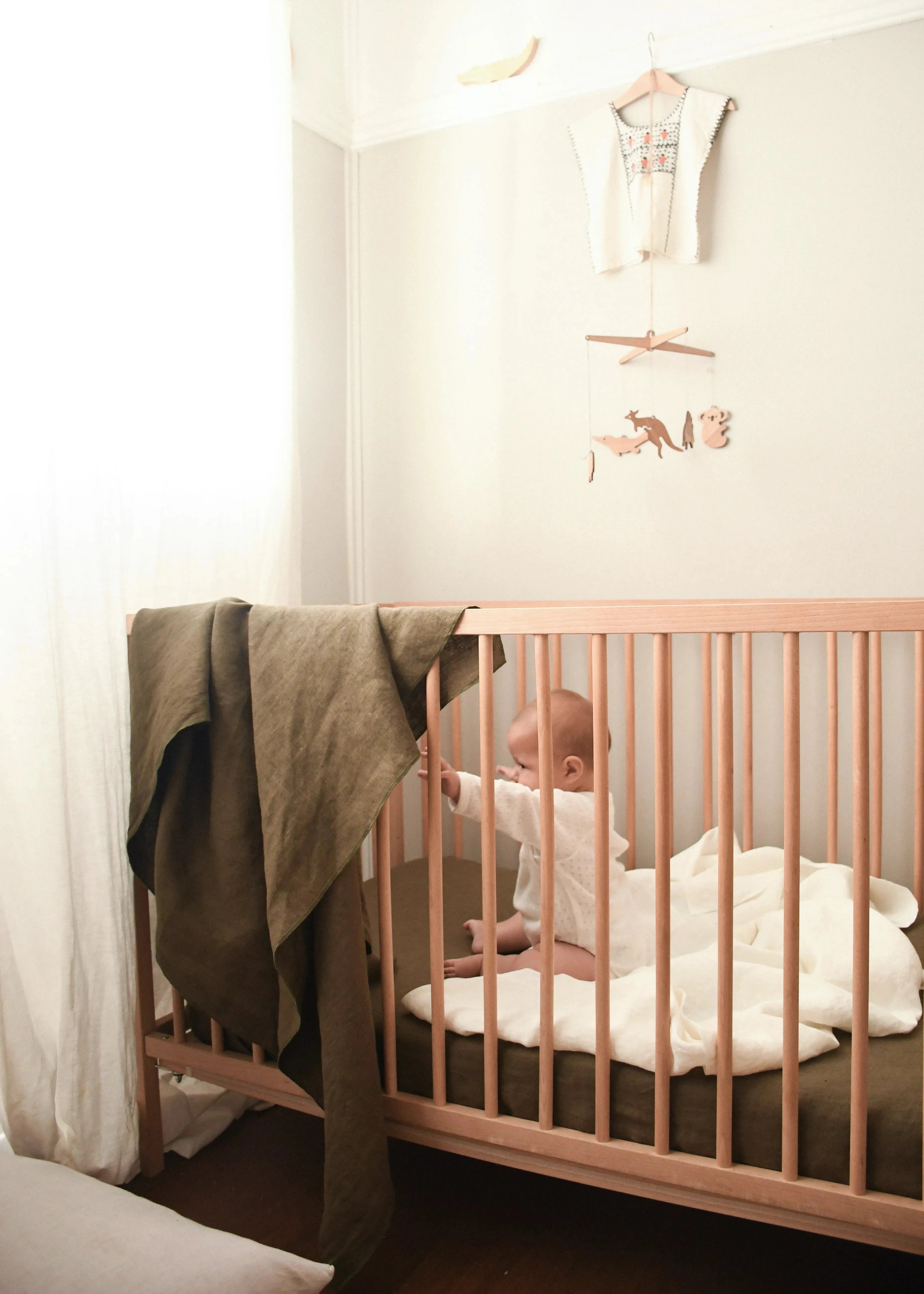 100% Hemp Bed Linen • Baby Cot Fitted Sheet Olive