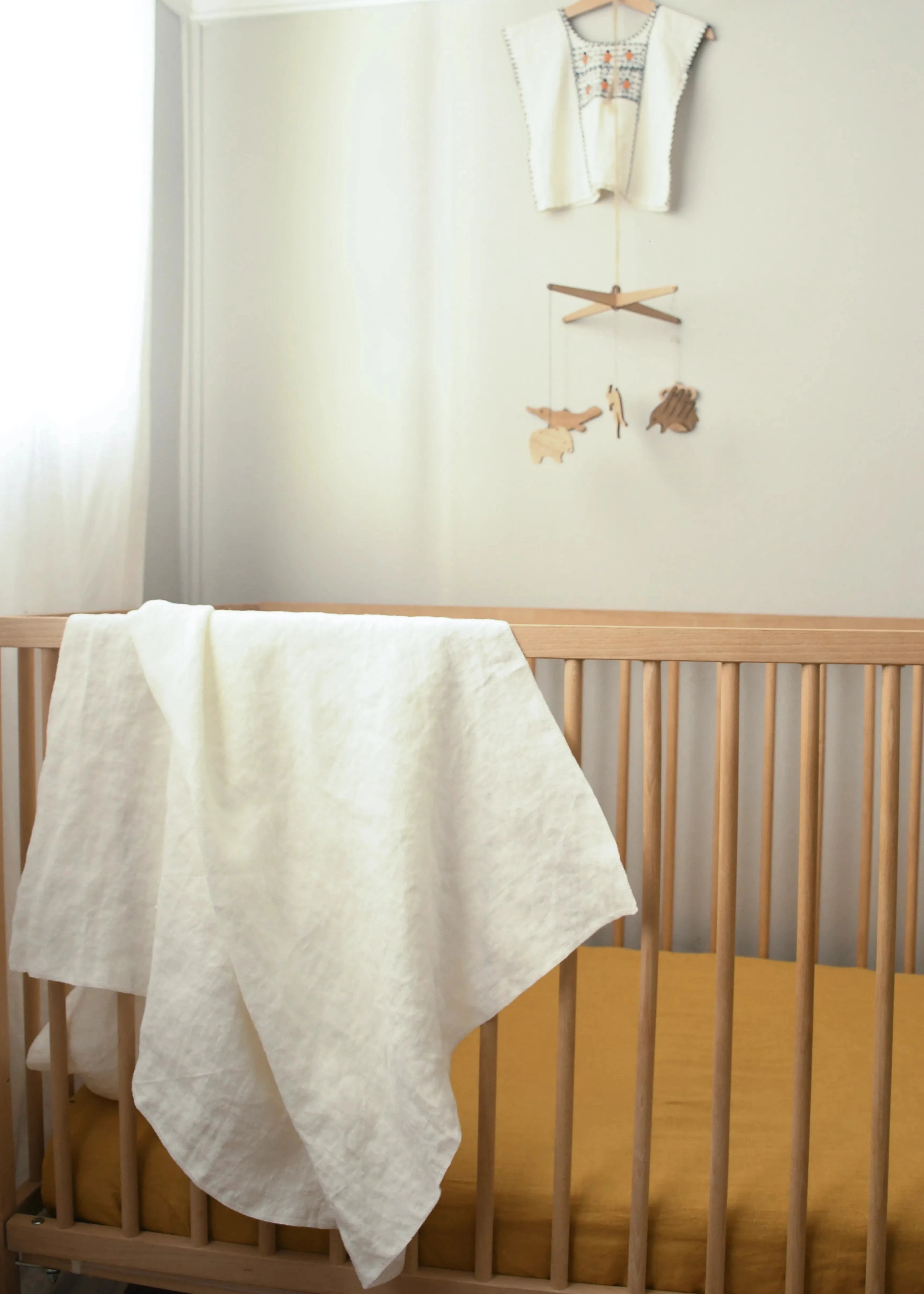 100% Hemp Bed Linen • Baby Cot Fitted Sheet Natural White