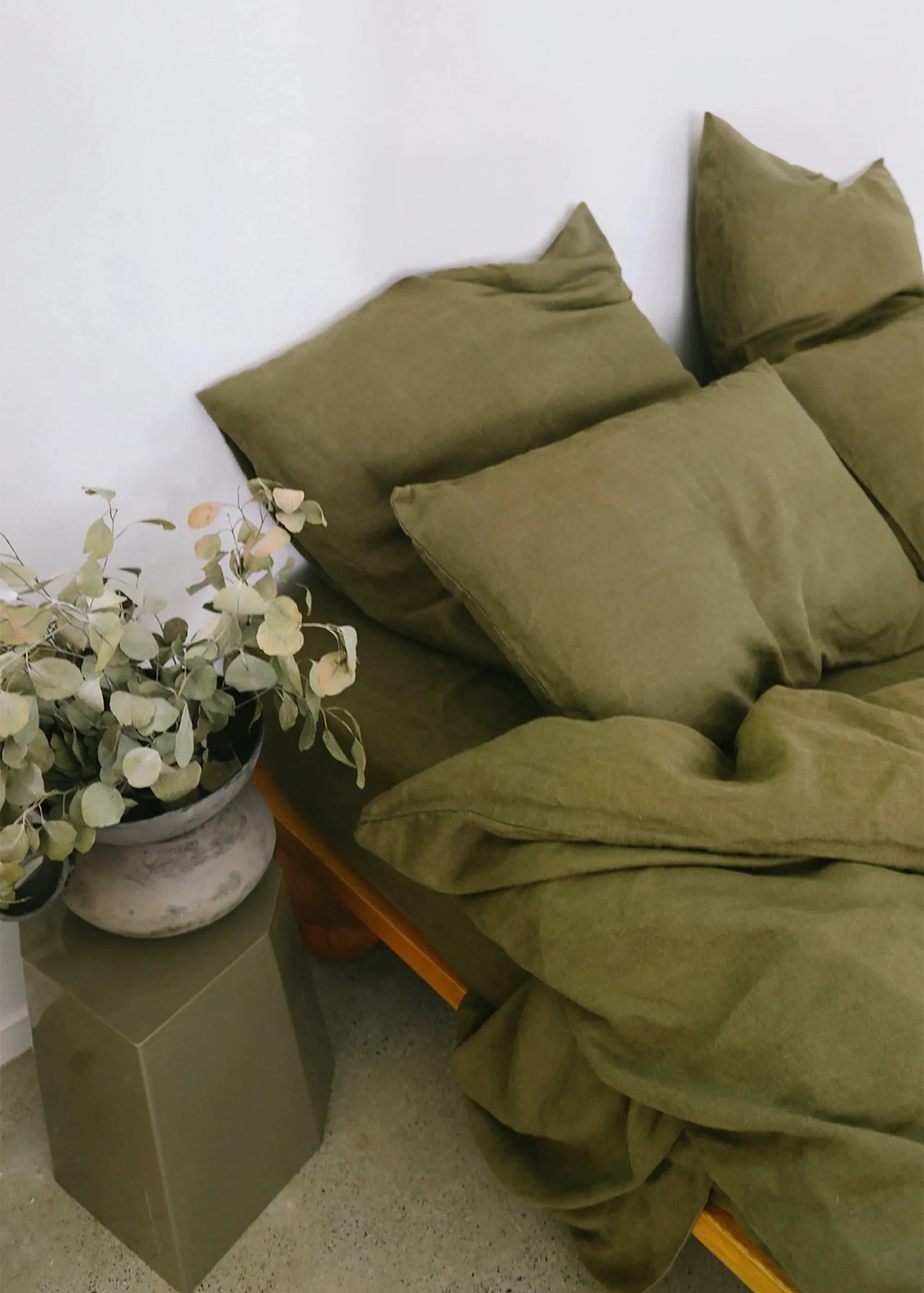 100% Hemp Bed Linen • European Pillowcase Set Olive
