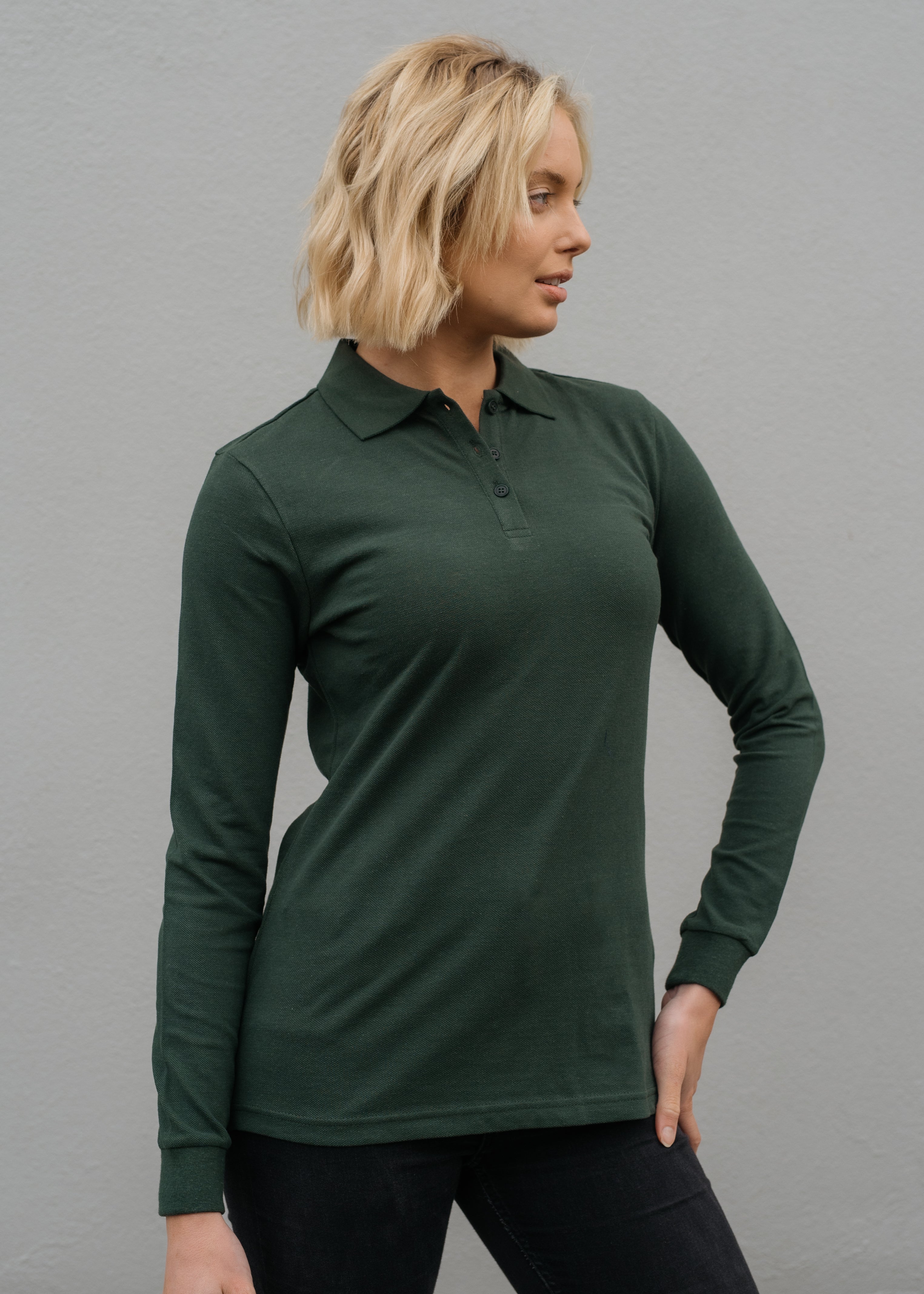 Polo Shirt Long Sleeve Forest Green