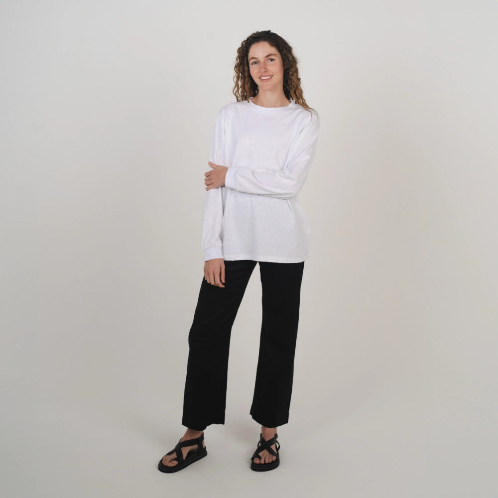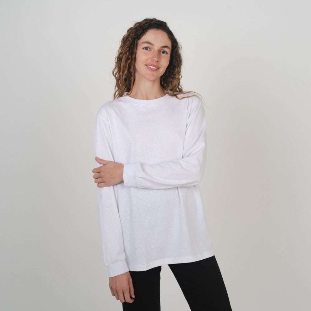 Unisex Boxy Long Sleeve Tee White