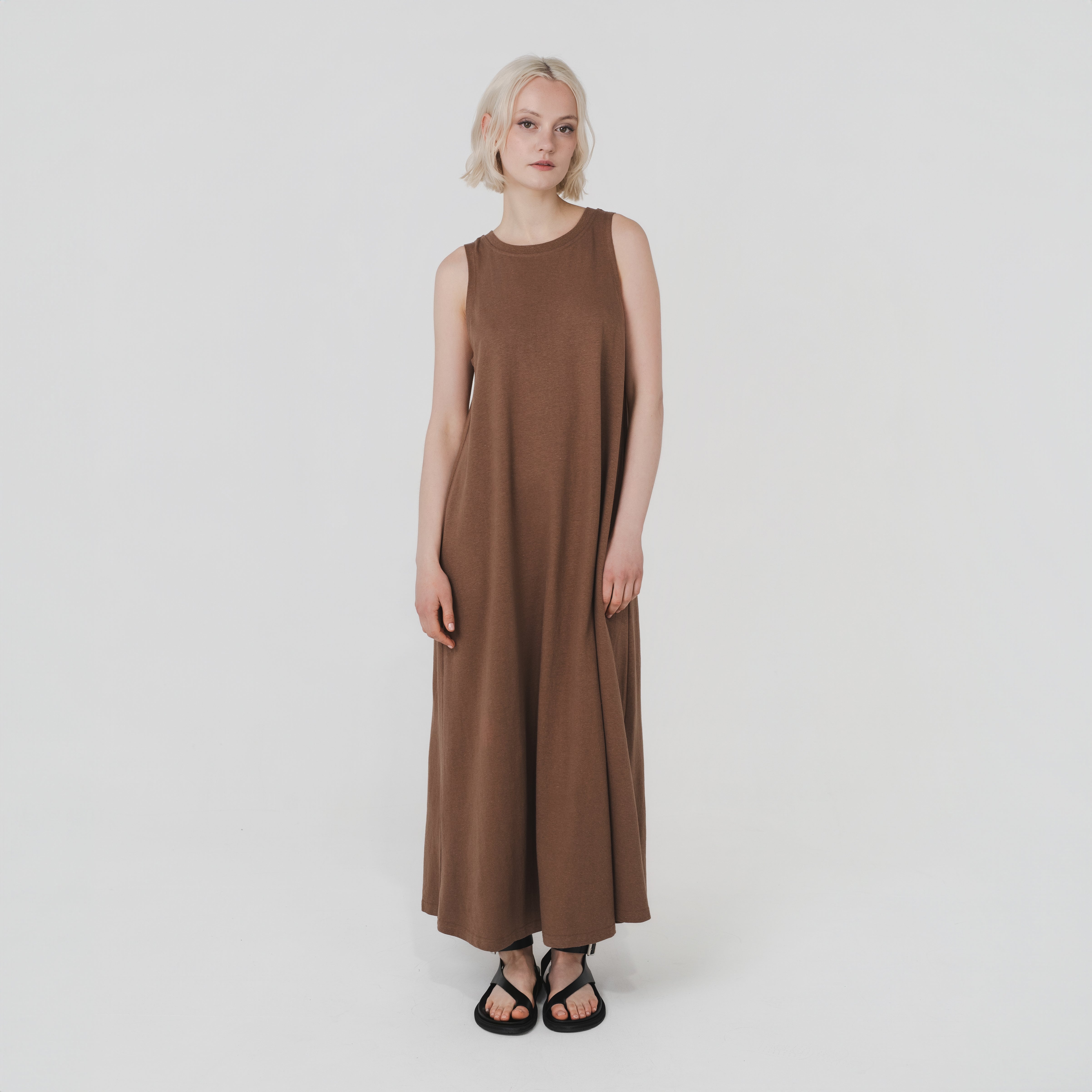 Our A-Line Tank Dress is made from a mid-weight blend of hemp and organic cotton jersey. It features a maxi length, sleeveless design, a round neckline, and a flattering and comfortable A-line shape. It’s a classic piece that’s comfortable, easy to wear, and versatile.