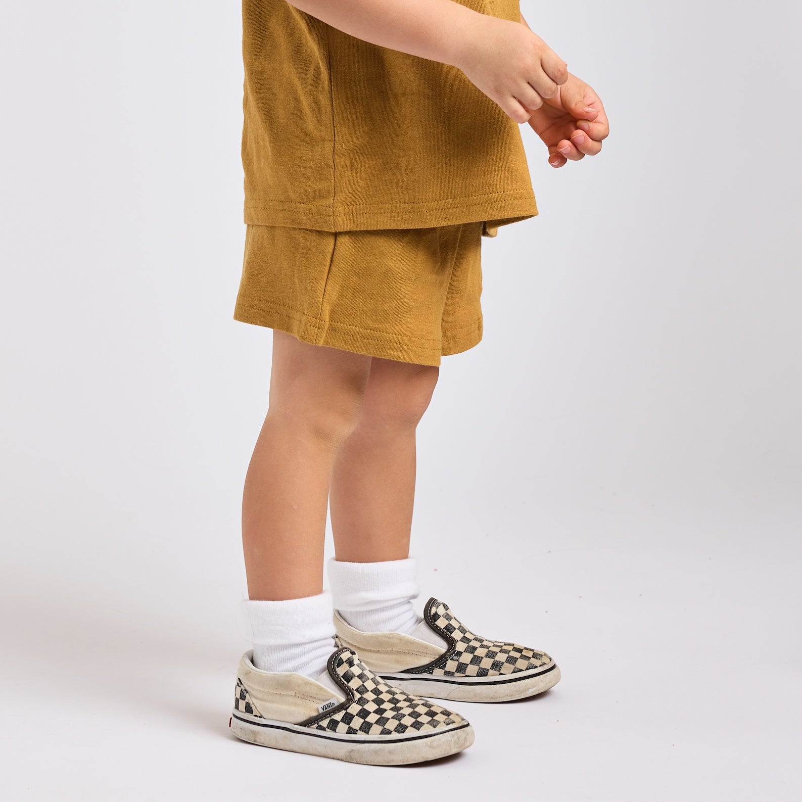 Our Kids Shorts are made from a soft, comfortable and durable hemp and organic cotton jersey. Featuring an elasticated waistband and a relaxed, boxy unisex fit, they’re easy to move and play in. The breathable fabric is naturally hypoallergenic and antimicrobial, perfect for sensitive skin. Paired them with our matching Kids Tee for a co-ord look.