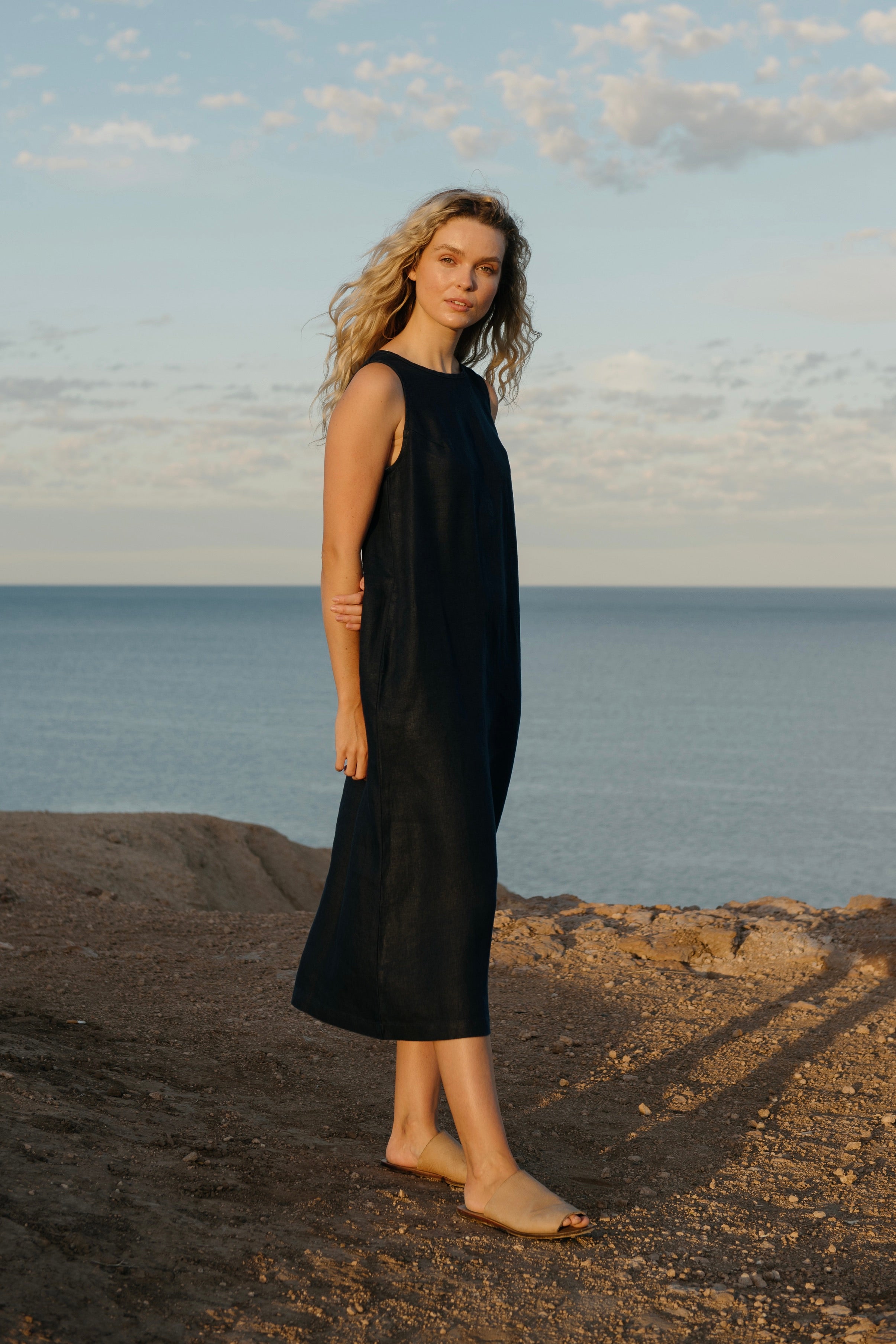 A classic and minimal dress made from our luxe 100% hemp. Designed for versatility, it's a reversible style with options for both round neck or V-neck styling. The Maxi Dress has side-seam pockets, is unlined and falls below the knees. Linen-like in feel, the midweight woven pure hemp is naturally breathable, moisture-wicking and odour resistant.