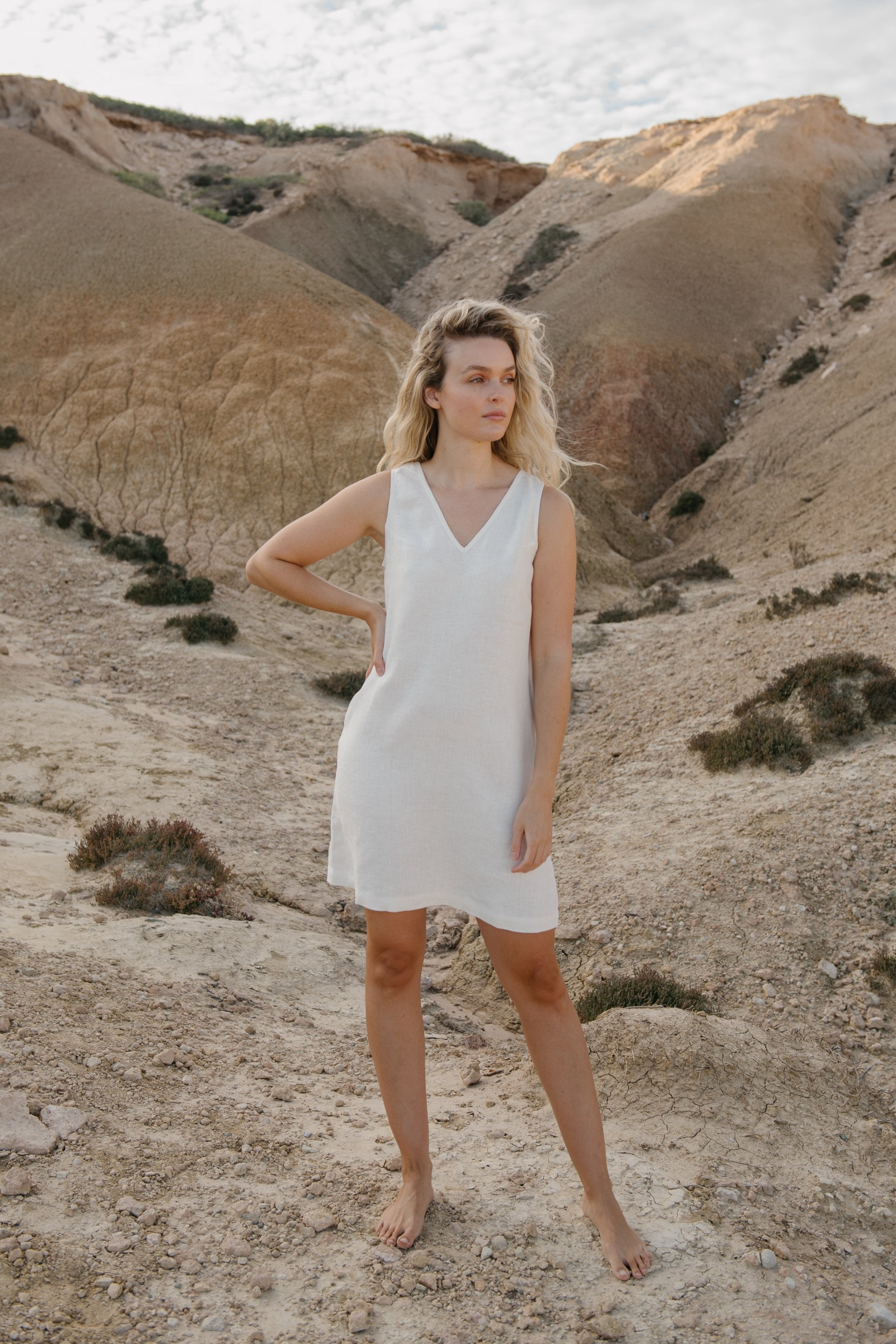 A timeless Mini Dress designed for versatility, it's a reversible style with options for both v-neck or round neck styling. A classic and easy to wear shift dress design in our signature 100% hemp fabric. The Mini Dress has side-seam pockets, is unlined and falls at mid-thigh length. It's the mini take on our longer Maxi Dress.