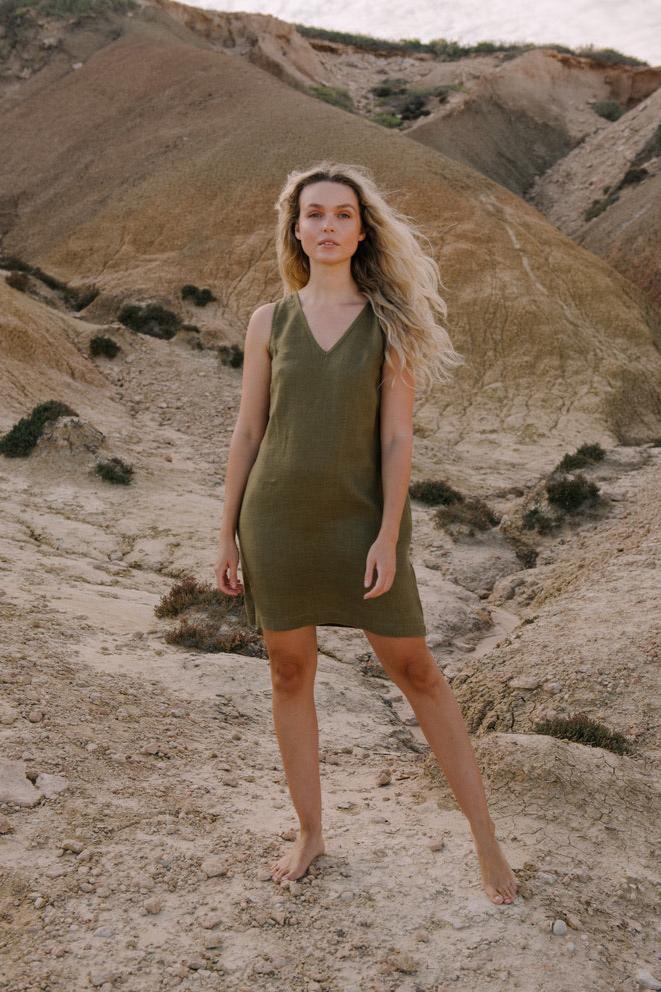 A timeless Mini Dress designed for versatility, it's a reversible style with options for both v-neck or round neck styling. A classic and easy to wear shift dress design in our signature 100% hemp fabric. The Mini Dress has side-seam pockets, is unlined and falls at mid-thigh length. It's the mini take on our longer Maxi Dress.