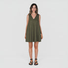 Our Mini Dress is crafted from soft and breathable 100% hemp. It features a V-neckline, side seam pockets, and a flattering and comfortable A-line silhouette. It's a classic and easy to wear shift dress made from natural fibre.