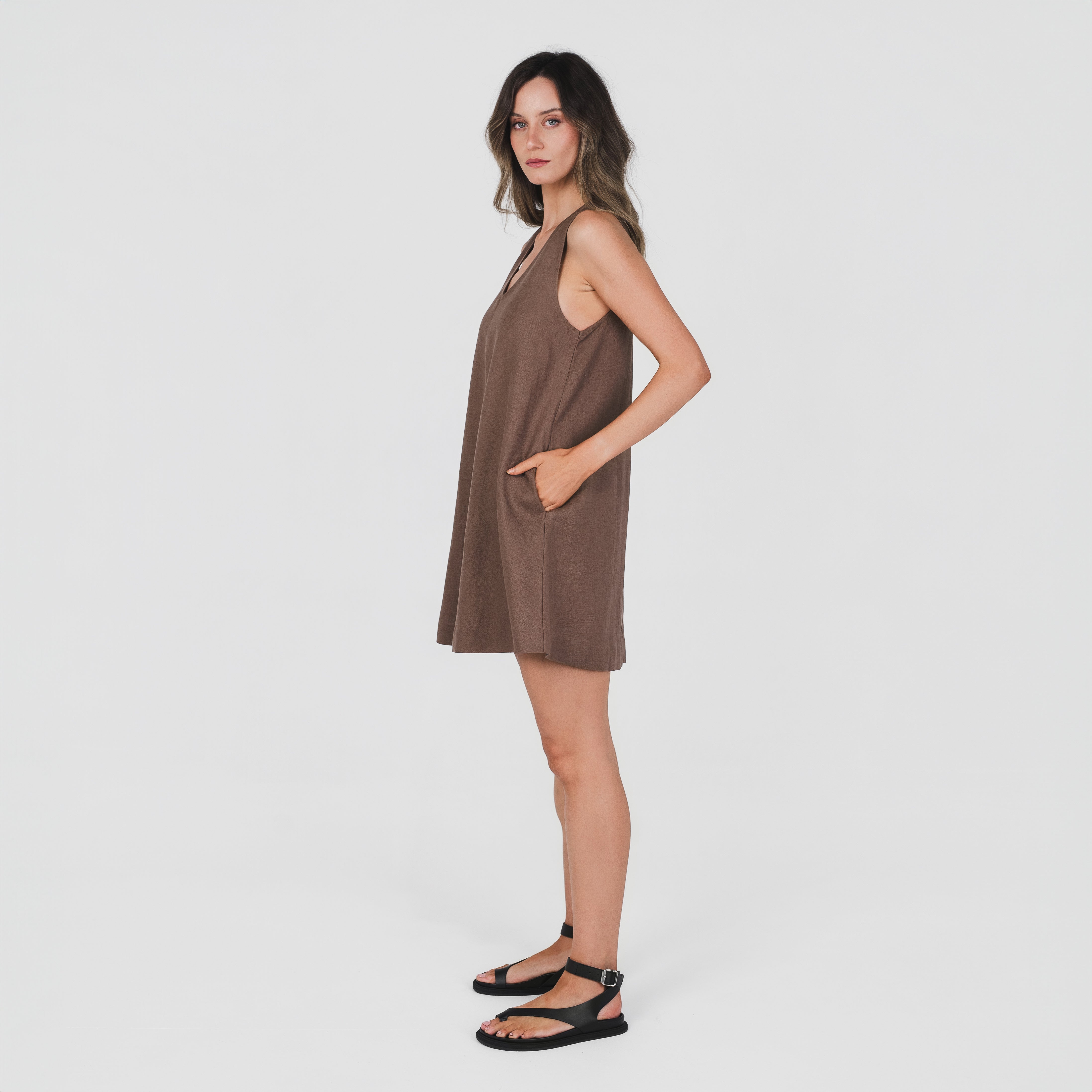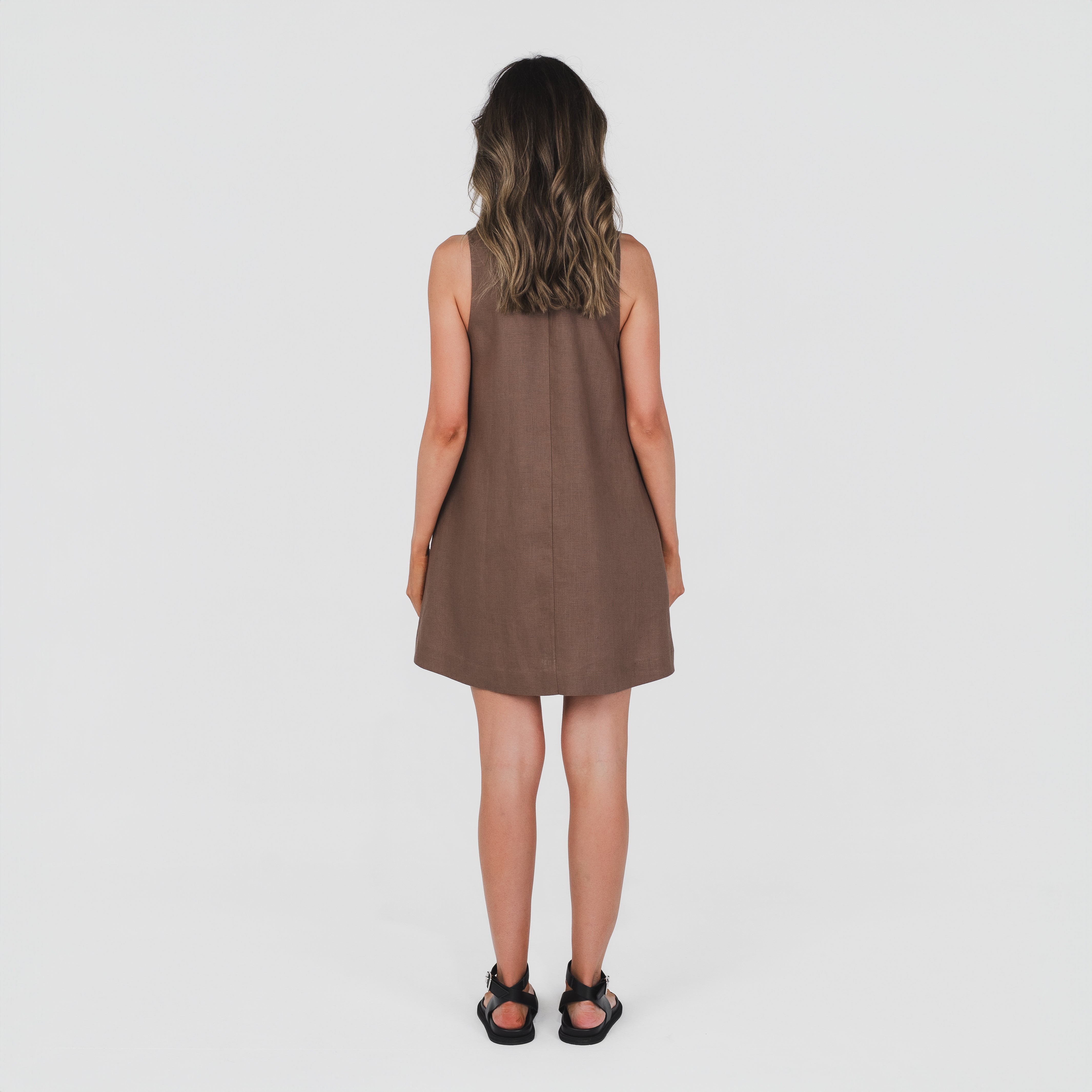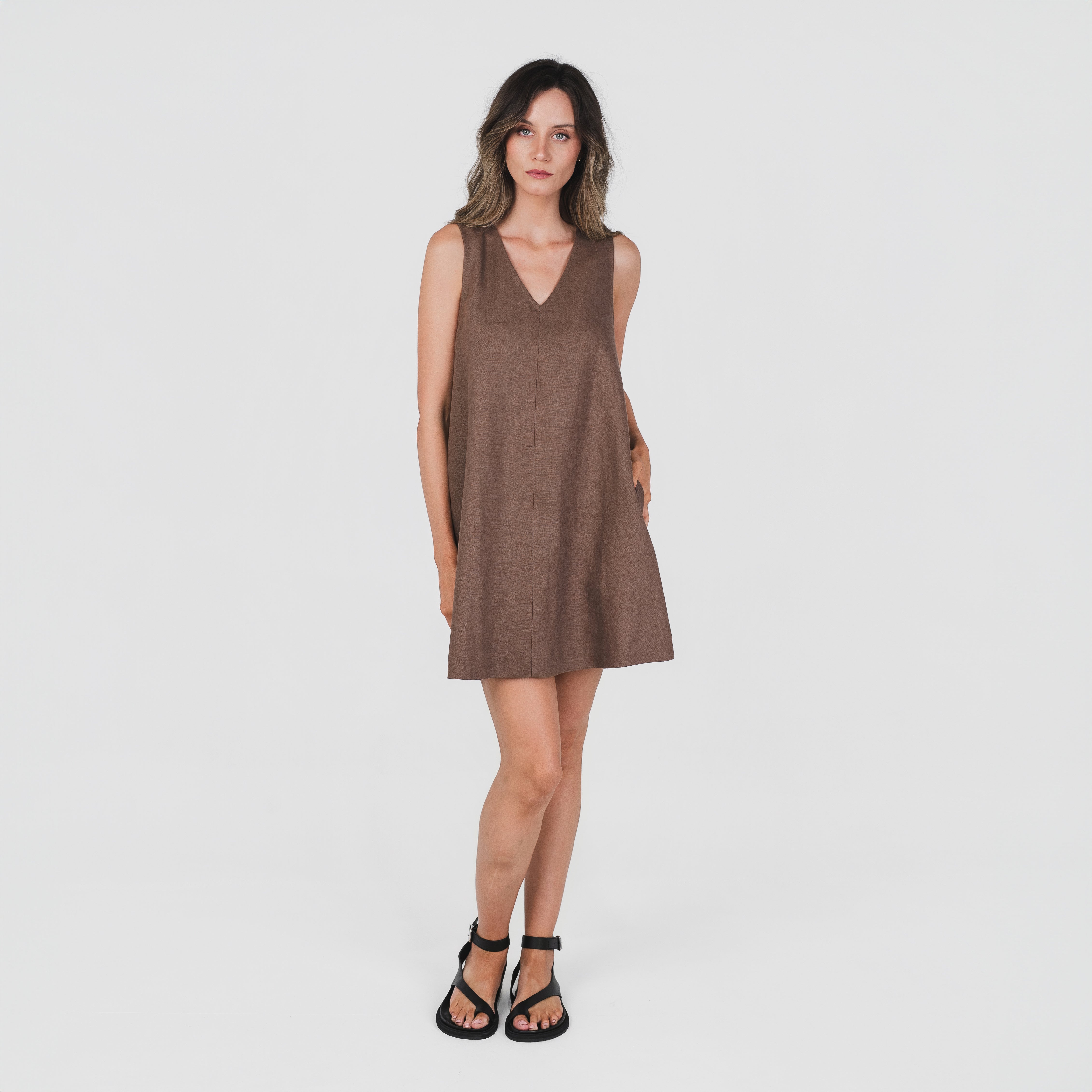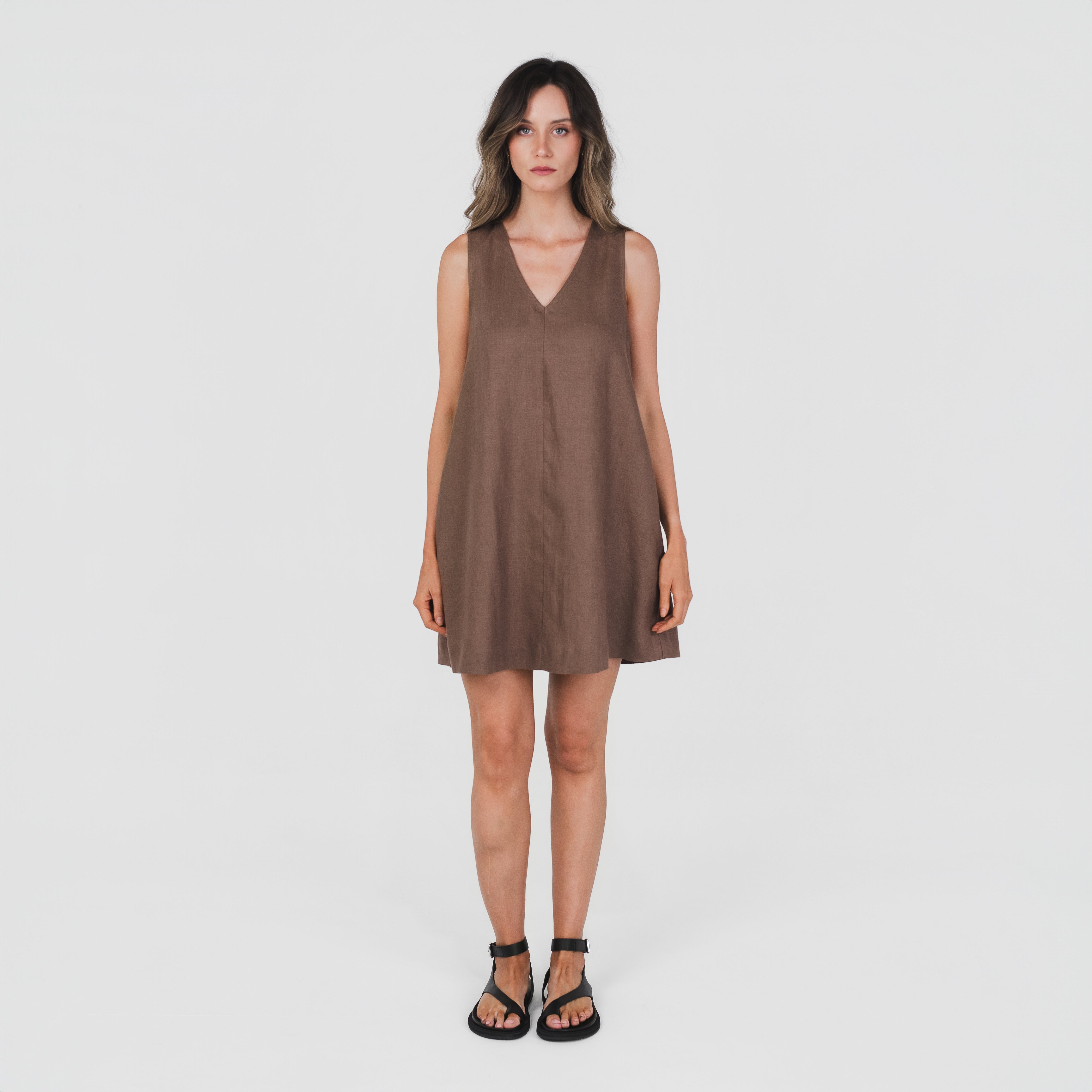 Our Mini Dress is crafted from soft and breathable 100% hemp. It features a V-neckline, side seam pockets, and a flattering and comfortable A-line silhouette. It's a classic and easy to wear shift dress made from natural fibre.