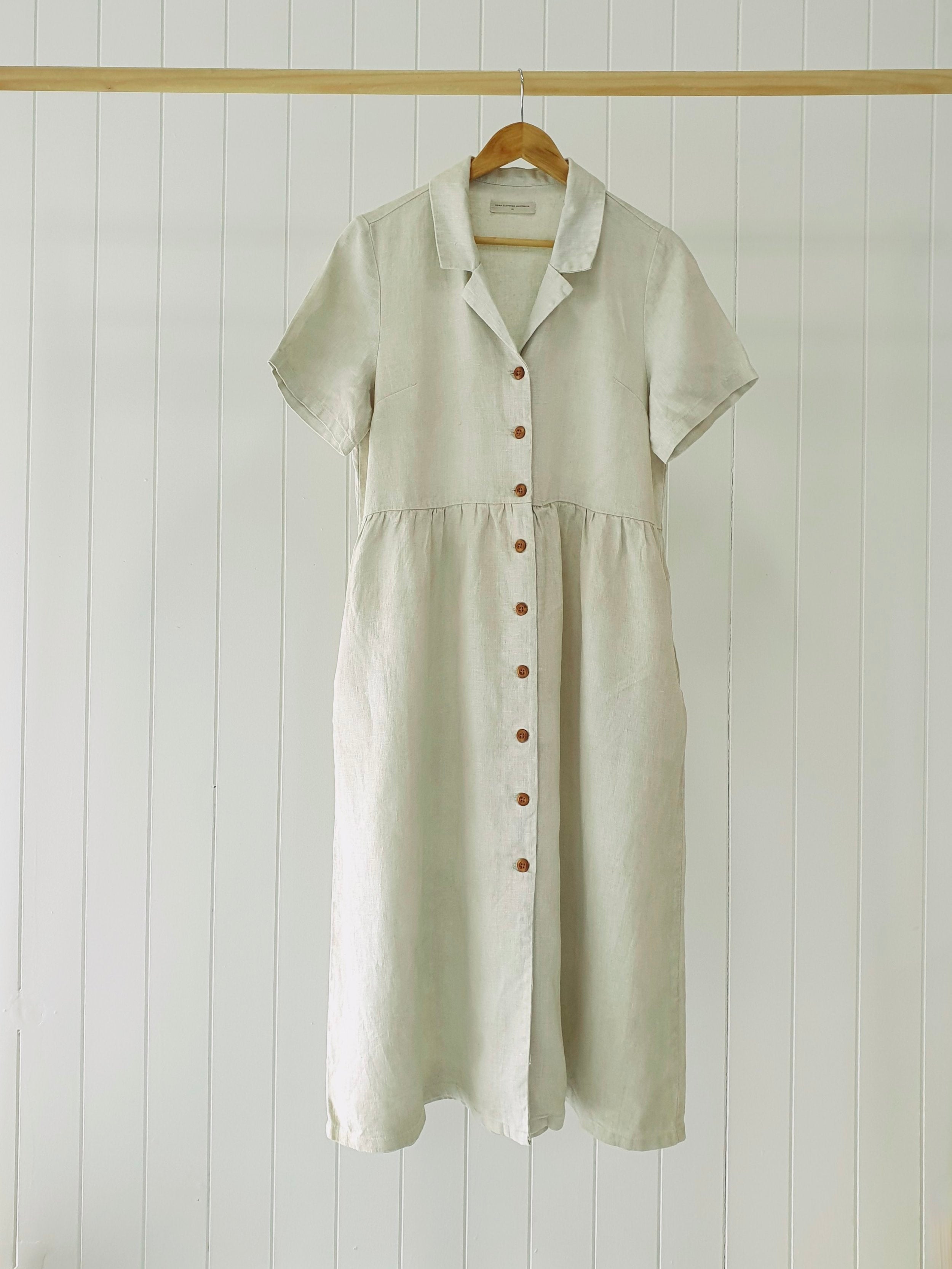 A bespoke piece, hand-dyed by botanical dye artist, Phoebe Hunter. This one-of-a-kind 100% hemp Day Dress has been dyed with native Australian indigo.