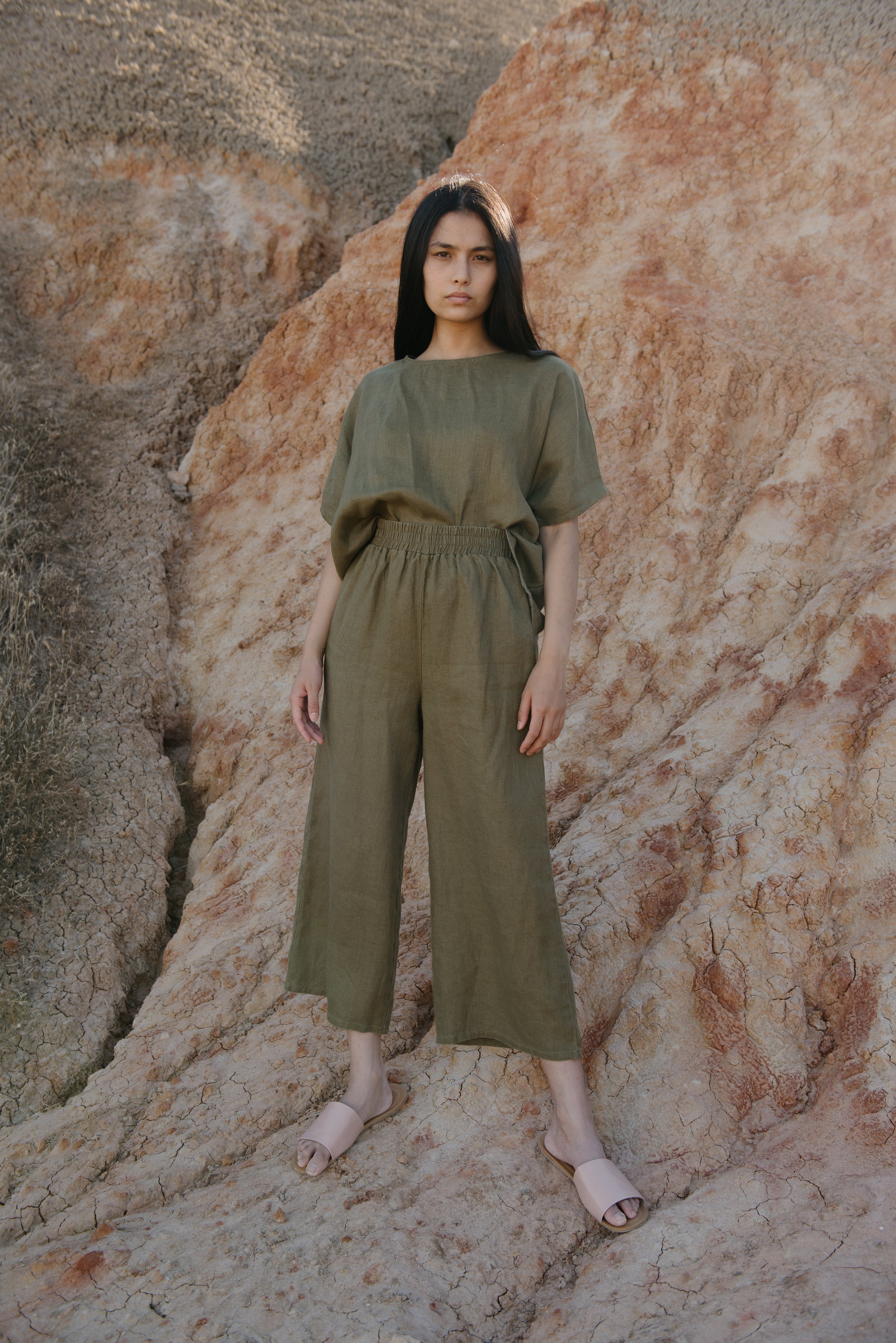 Made from our luxe 100% hemp, our hemp pants feature an elasticated waistband, creating a comfortable and versatile pull-on style that you'll wear all year round. Practical and refined, our Pull On Pants feature a 7/8 leg length, a high-rise waistline and side seam pockets. Create a co-ord look and match it with our Resort Shirt or Boxy Top.