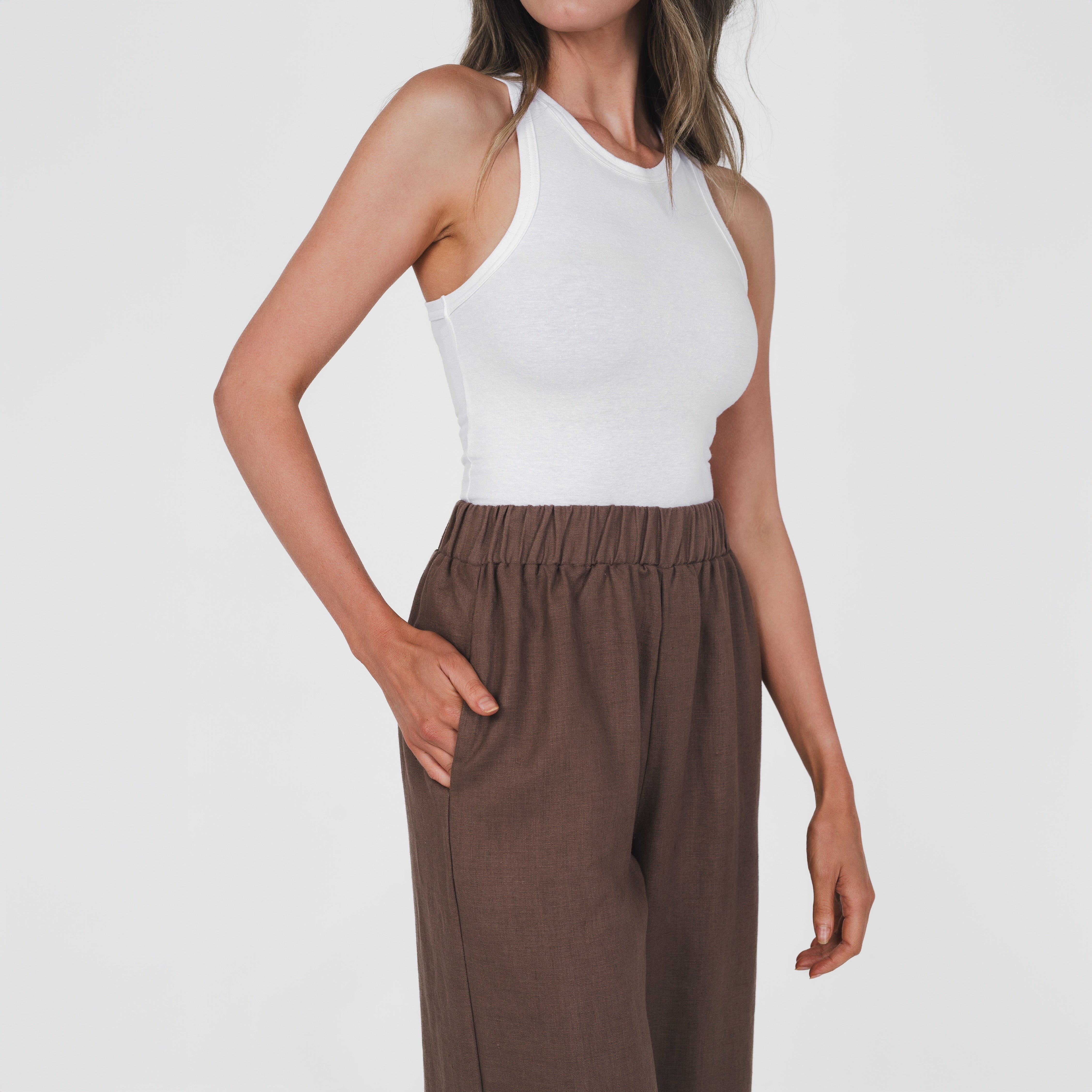Made from our luxe 100% hemp, our Pull On Pants feature a comfortable elasticated waistband, 7/8 leg length, high-rise waistline, and side seam pockets. Create a co-ord look and match it with our Resort Shirt.
