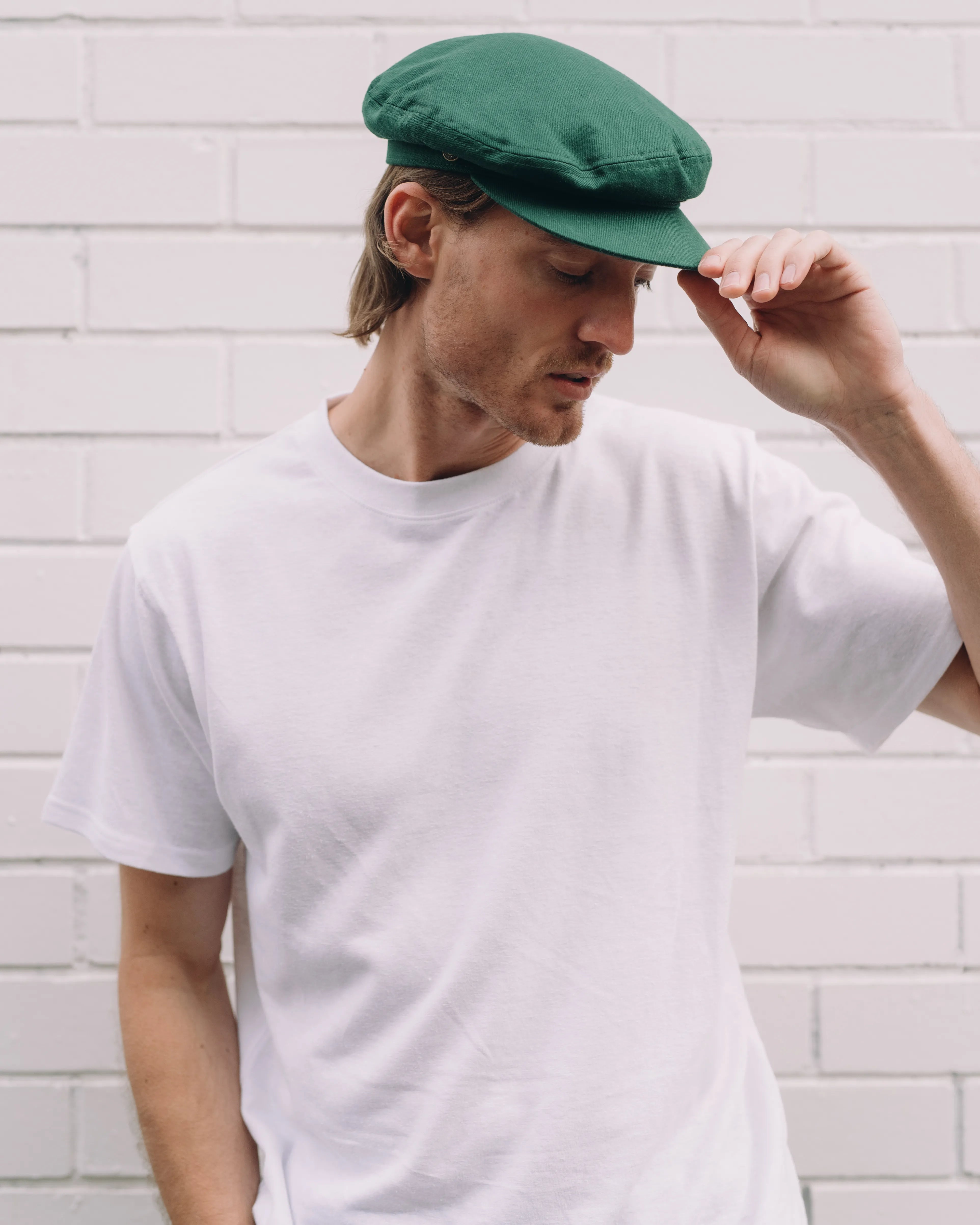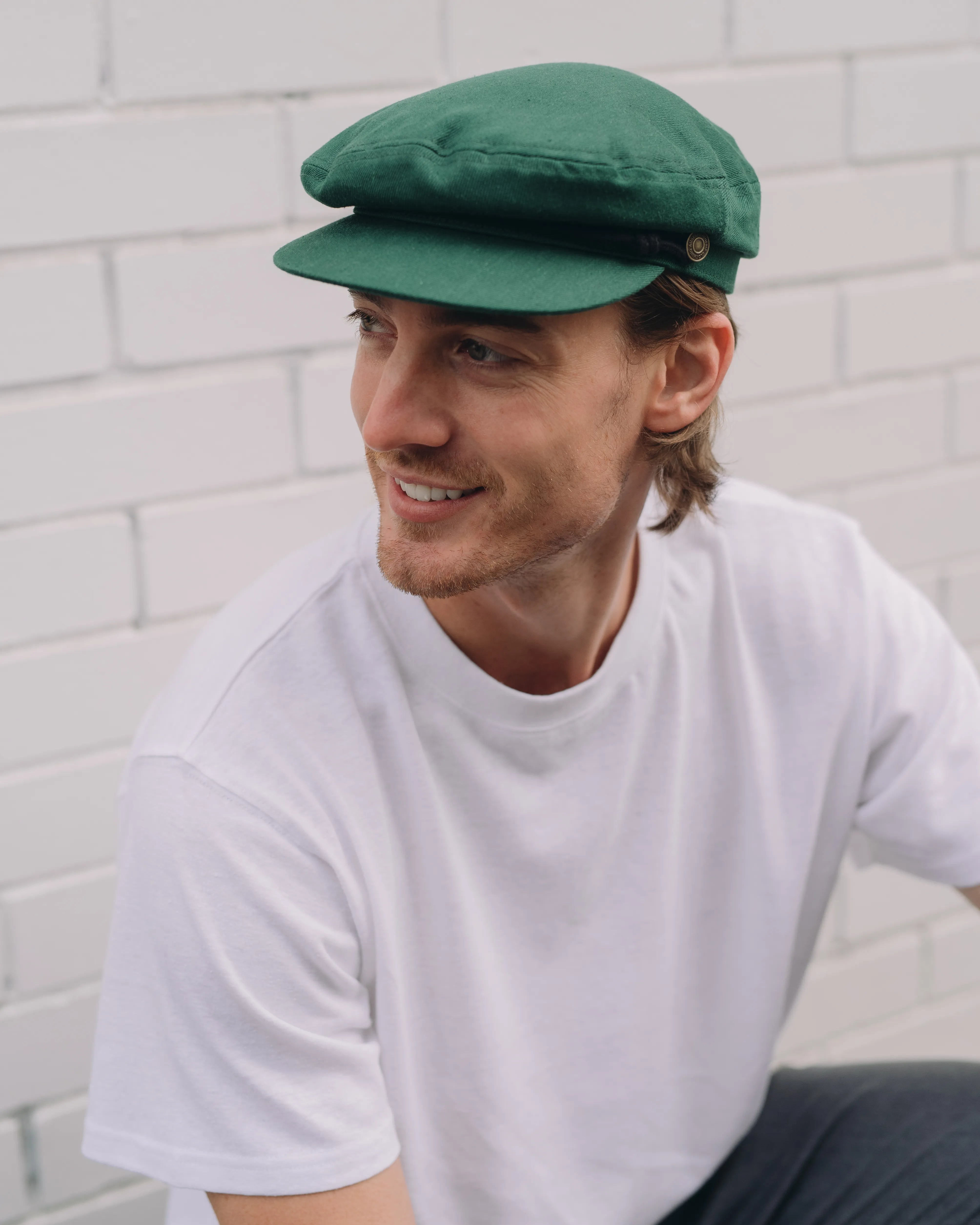 Our unisex hemp Sailor Cap is a classic fiddler cap style with a short curved brim, custom brass buttons and a traditional braided rope trim. Crafted from a mid-weight hemp and organic cotton twill, with 100% hemp lining, the hemp sailor cap is a timeless high-quality classic made from sustainable natural fibres.