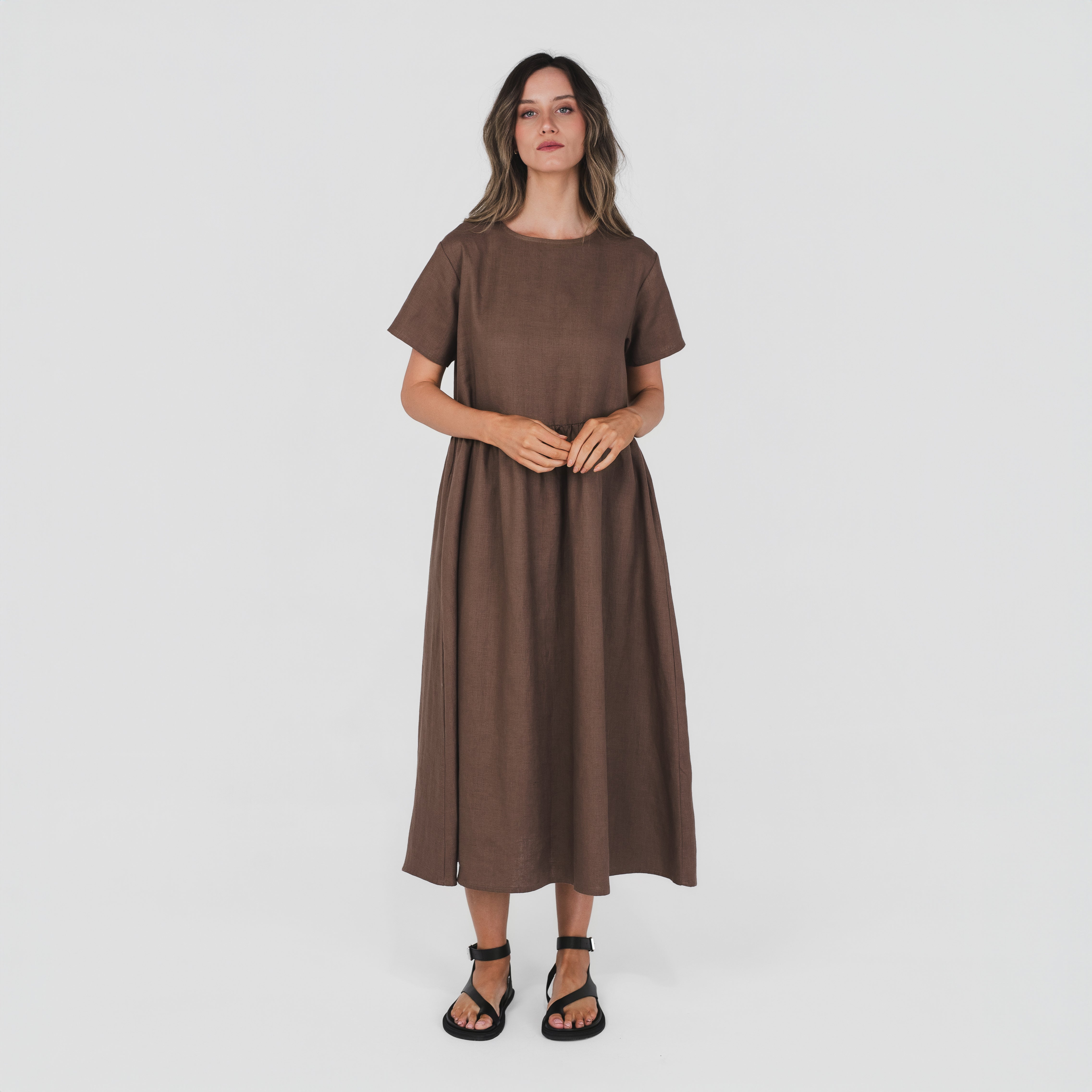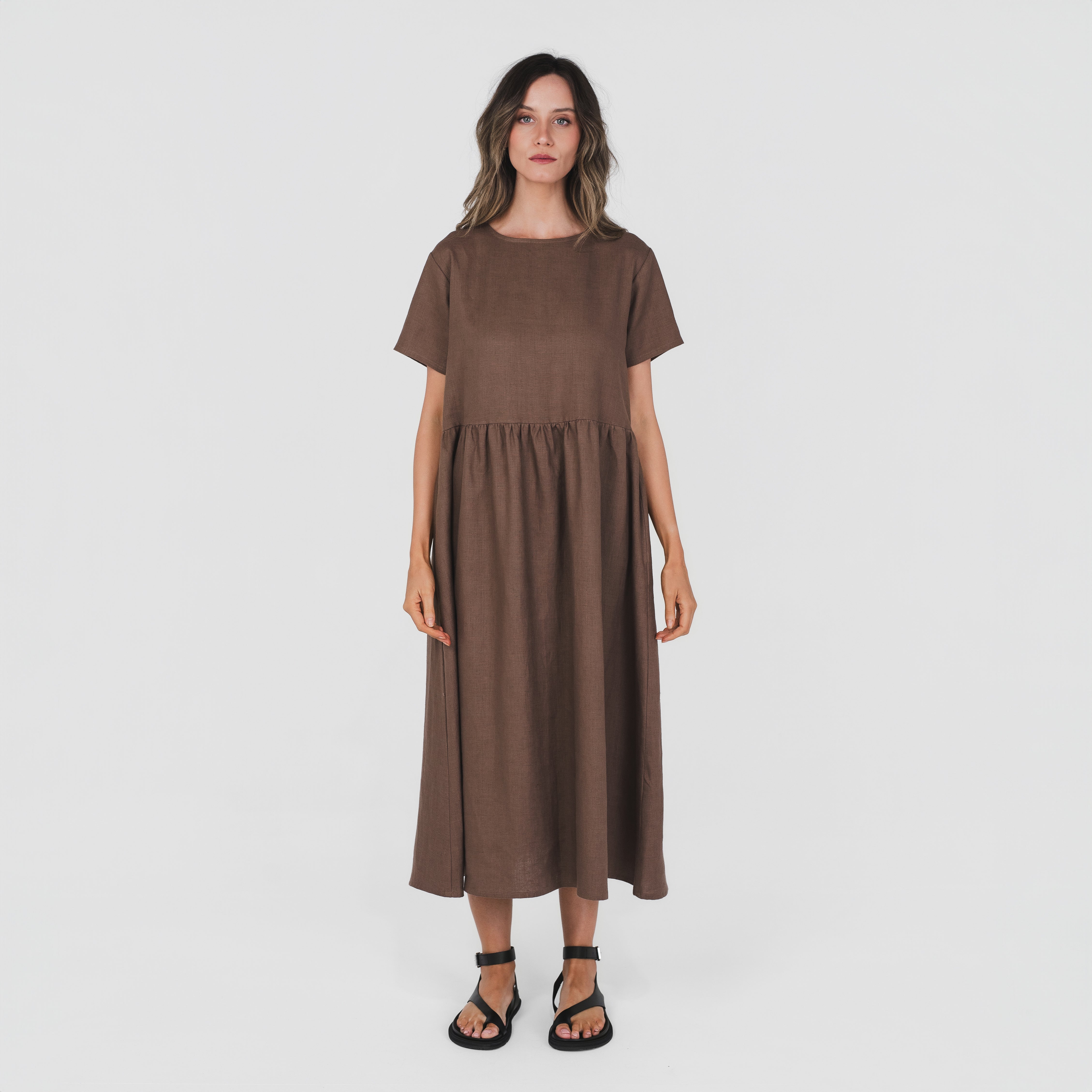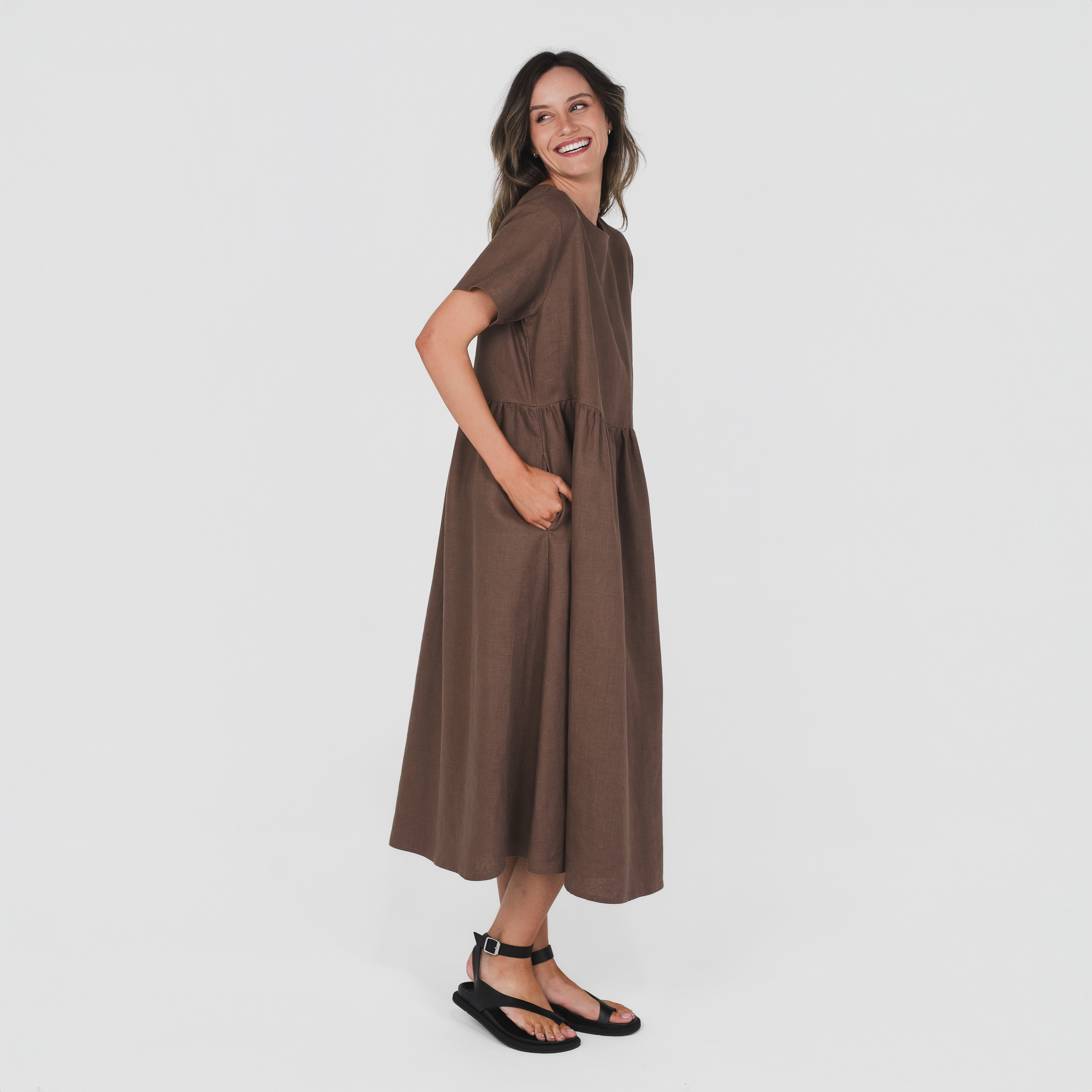 The Smock Dress is made from our signature 100% hemp fabric. It features a relaxed fit with a gathered waist seam, short sleeves, and pockets. It’s a relaxed and timeless style designed for everyday wear.