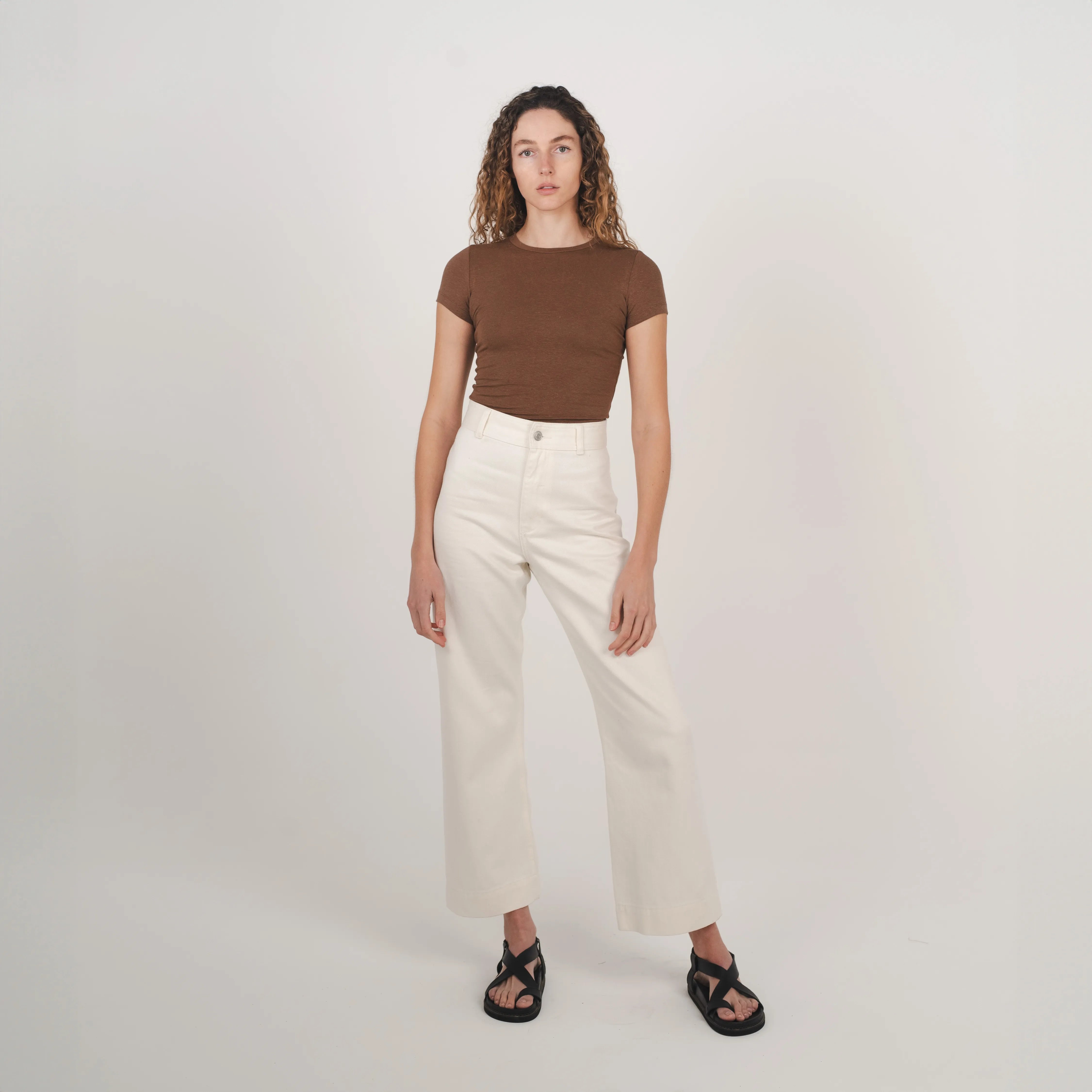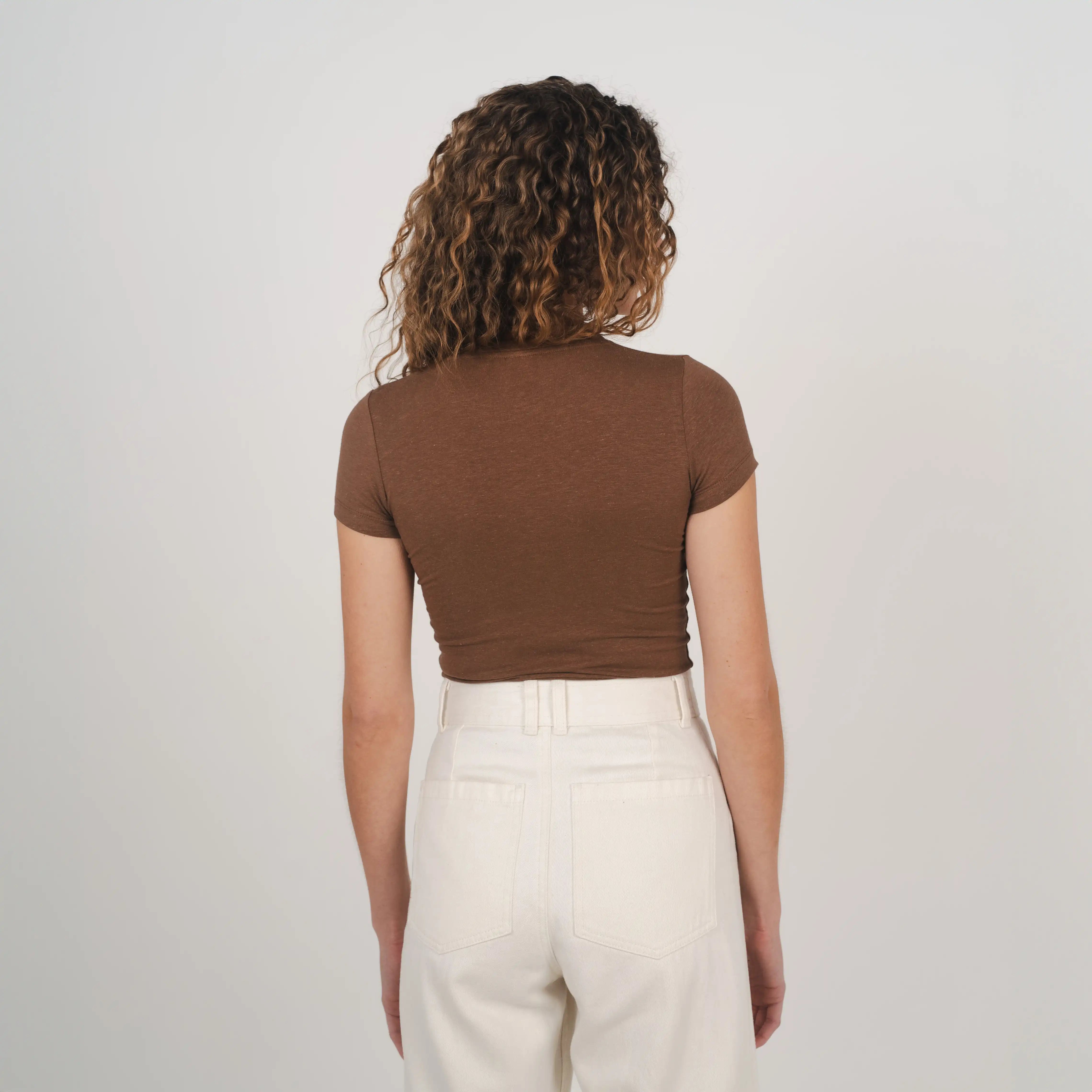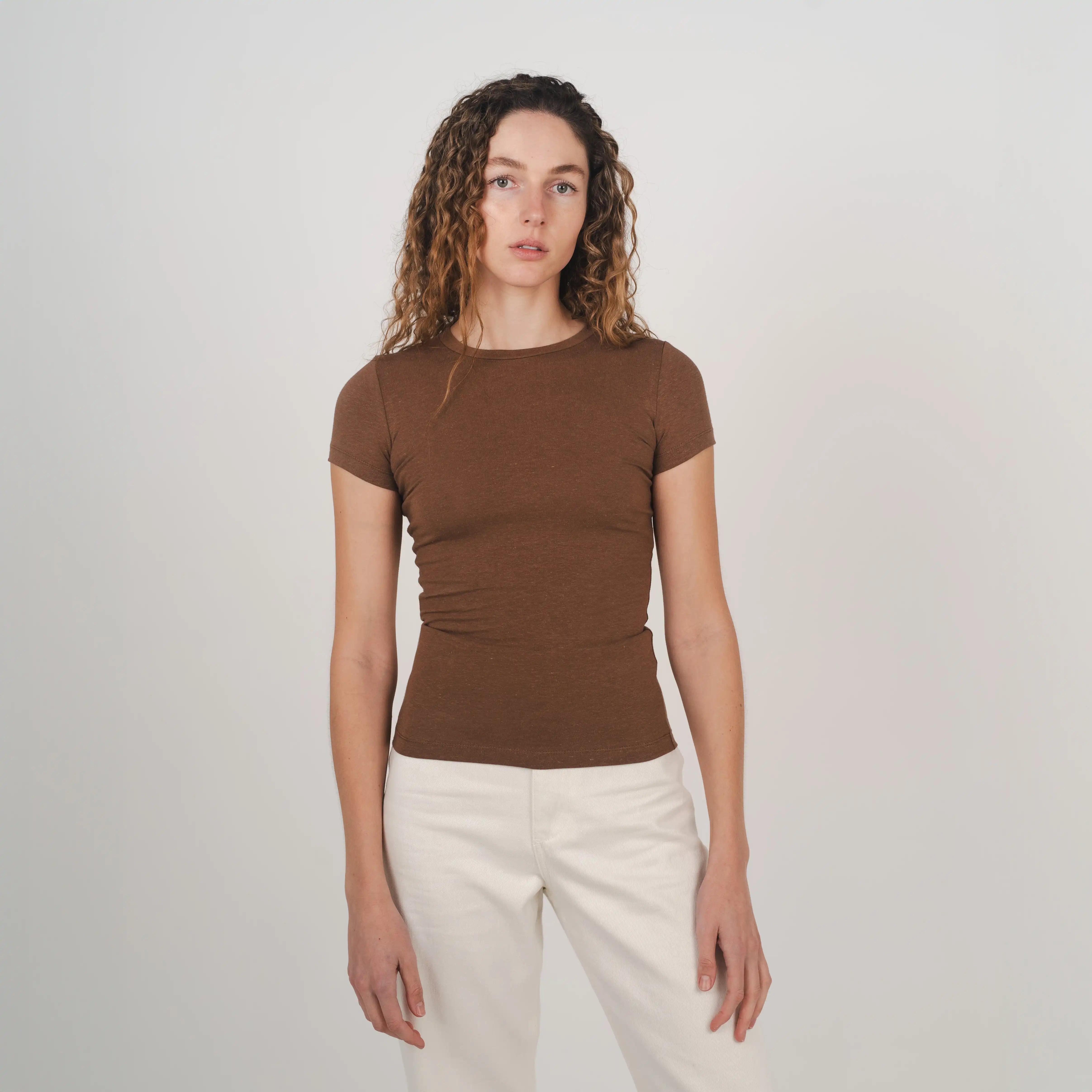Our short-sleeve fitted tee is a classic design for everyday wear, featuring a crew neck and long line length. Made from a breathable, mid-weight hemp and organic cotton with 5% spandex for added stretch, it contours in all the right places.