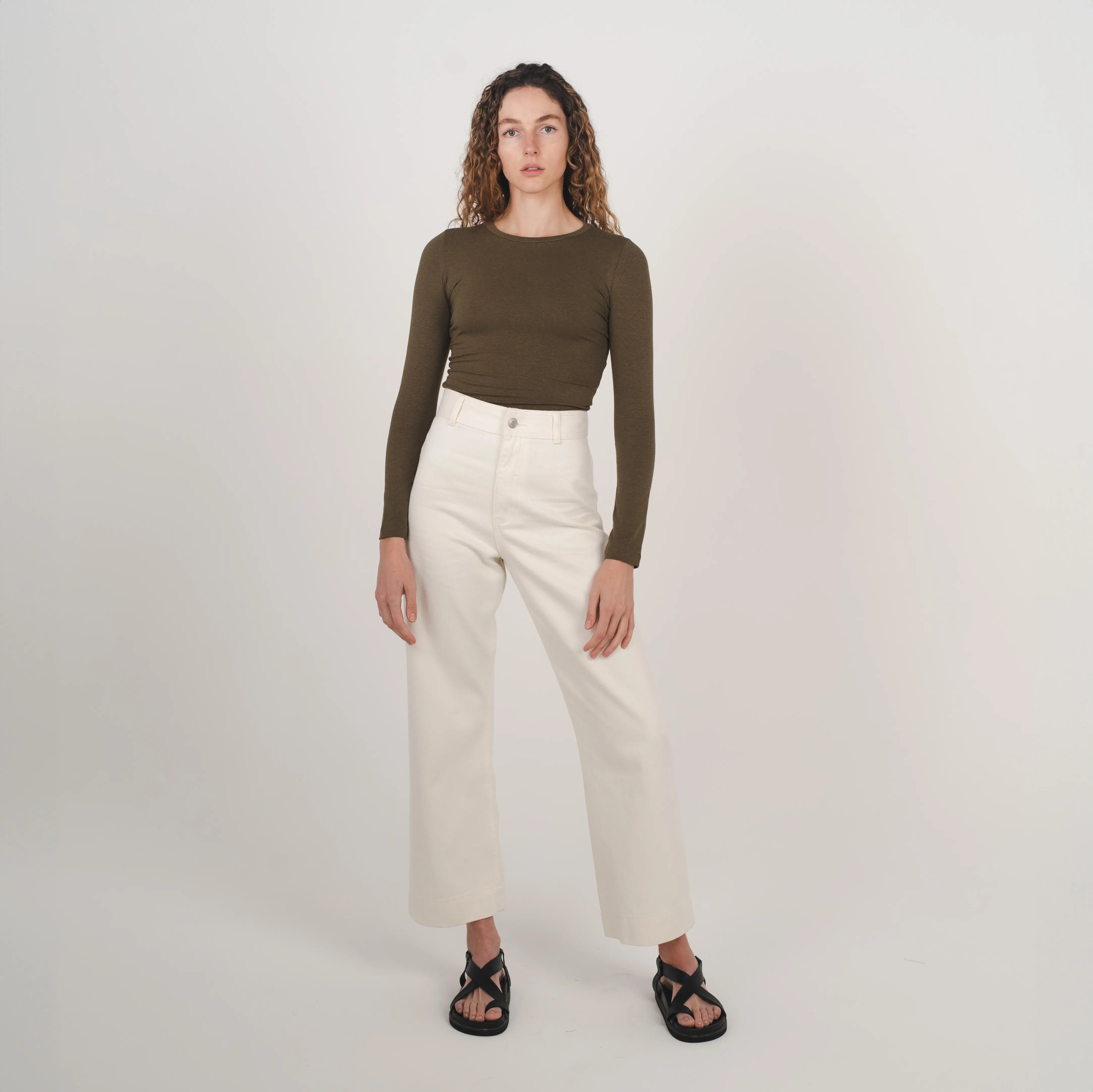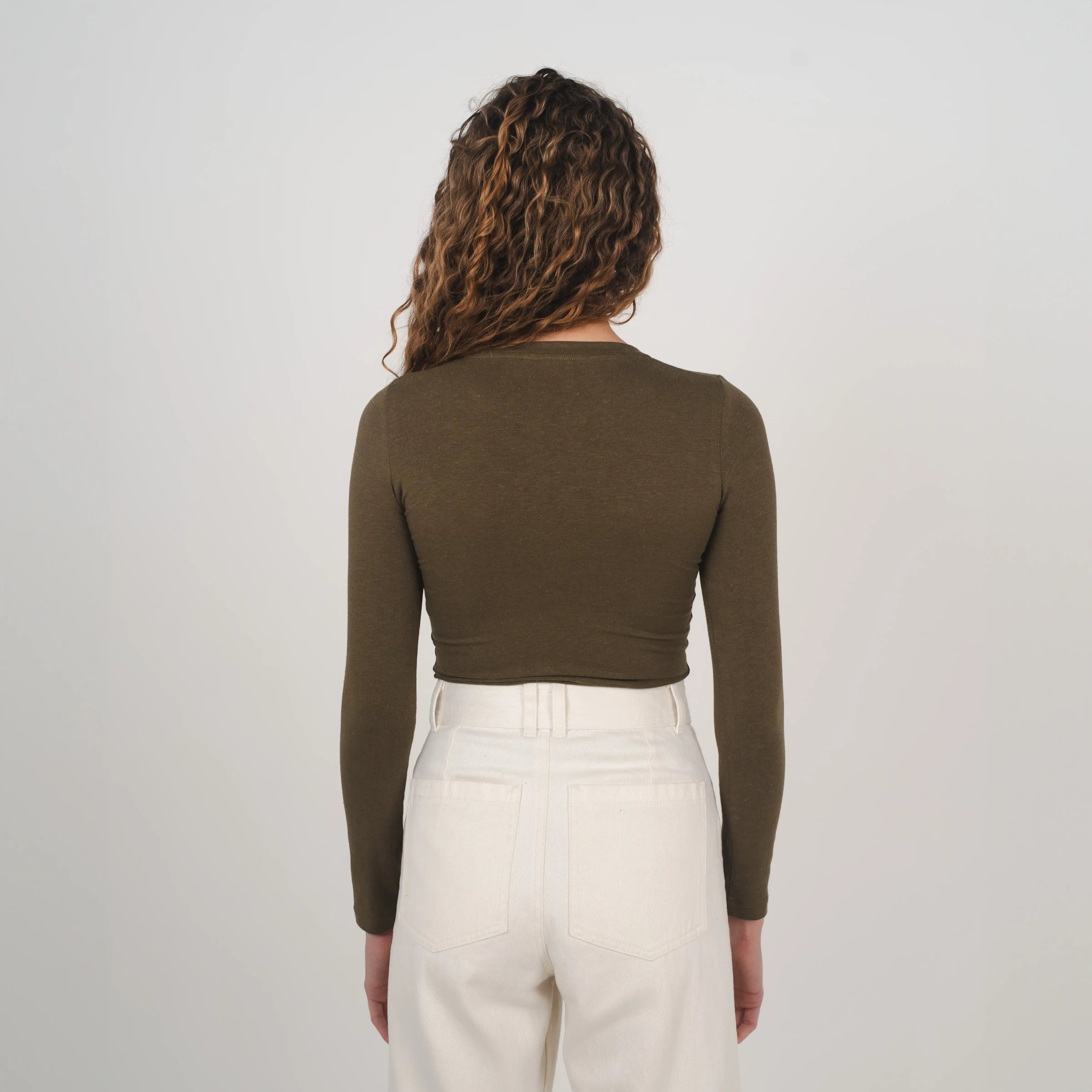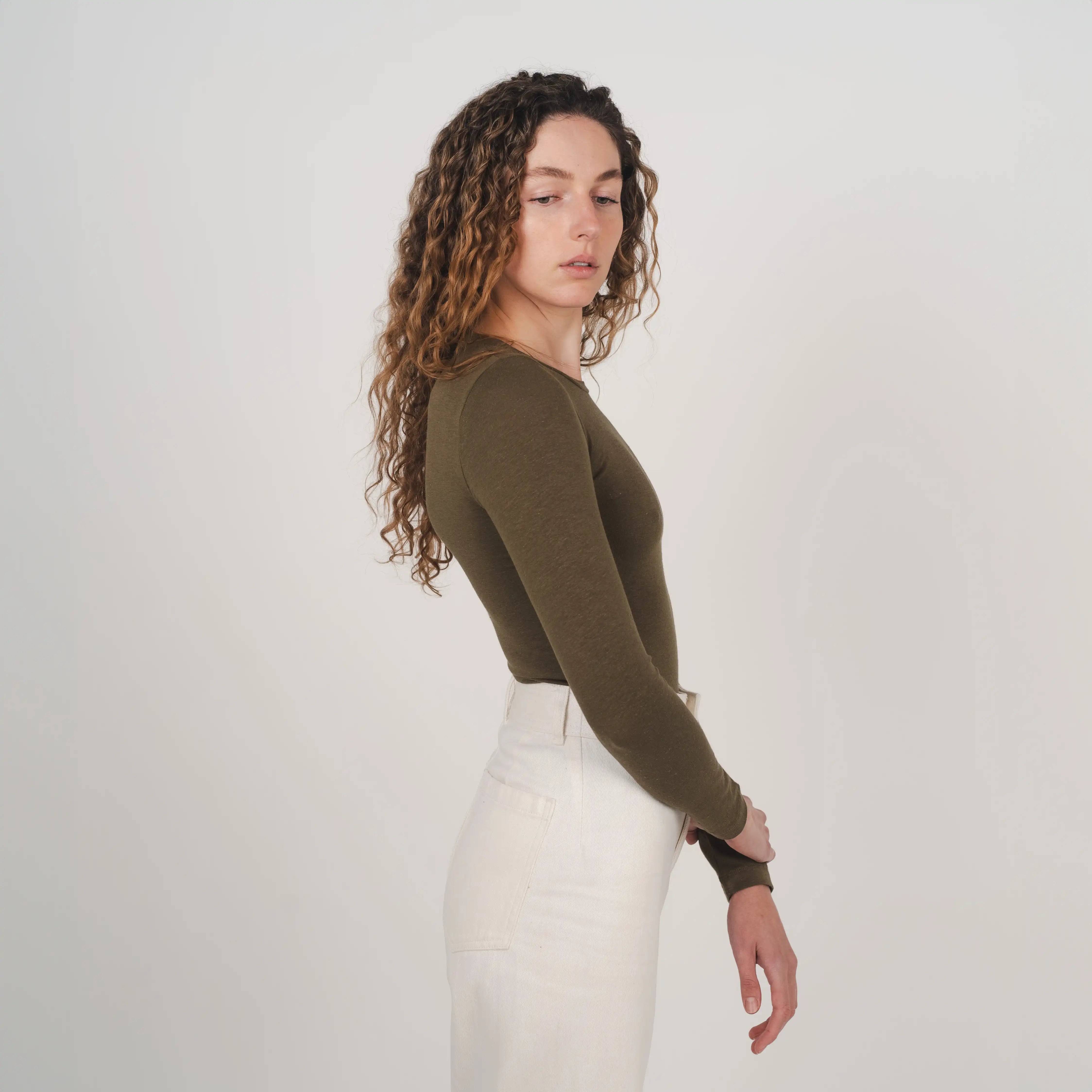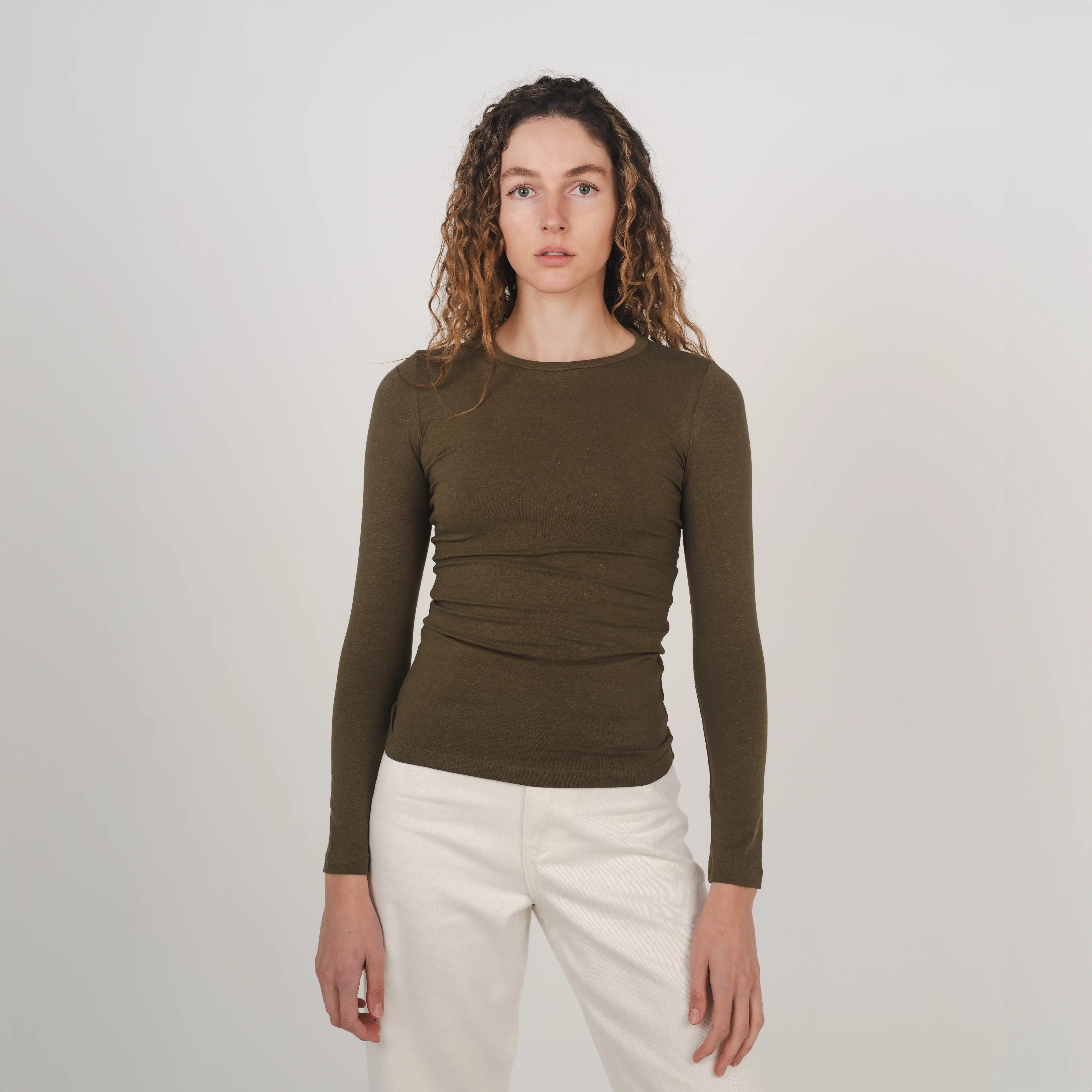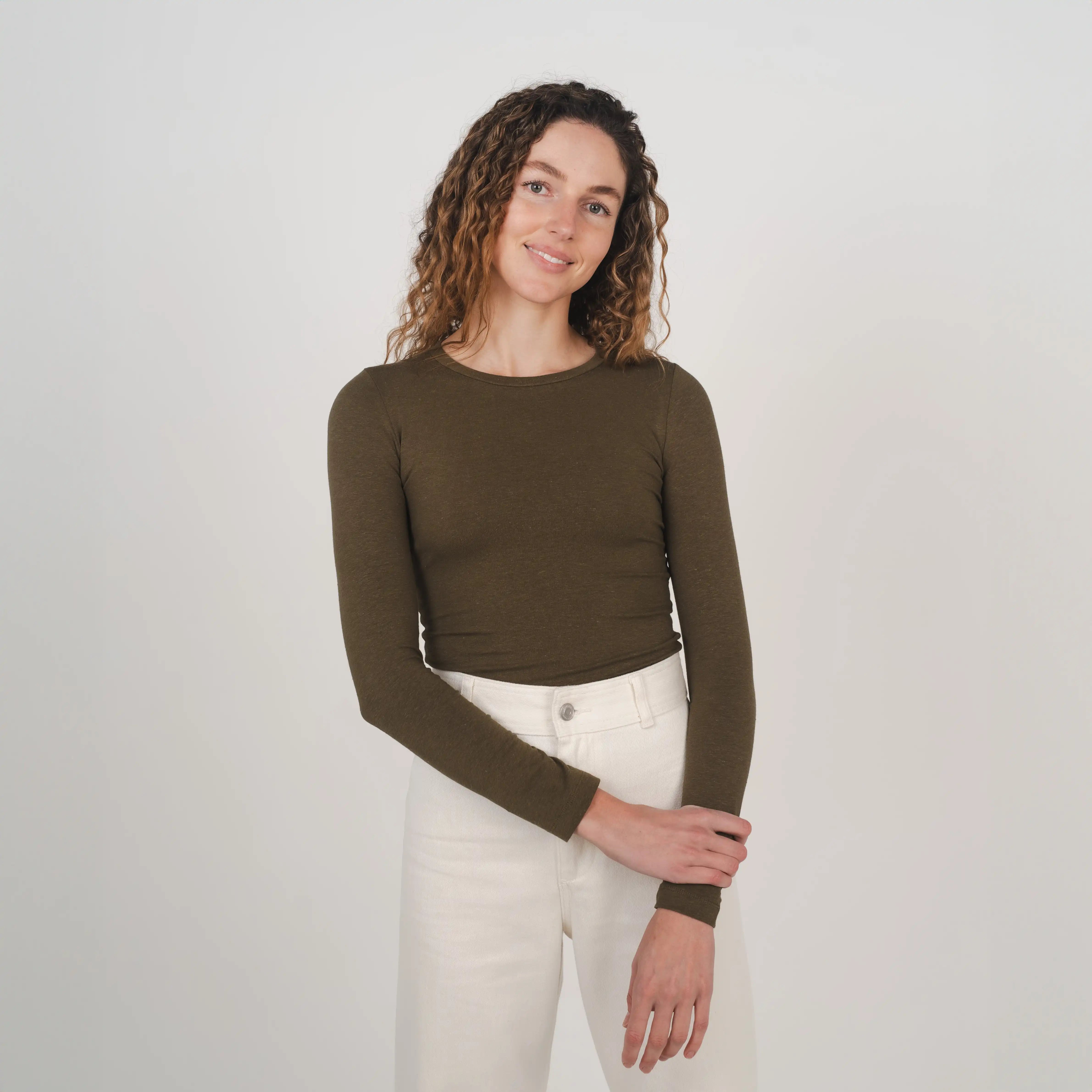 Our stretch long sleeve top is crafted from breathable hemp and organic cotton with 5% spandex for added stretch and comfort. Featuring a crew neck and long line length, it’s ideal for layering and designed for all day comfort.