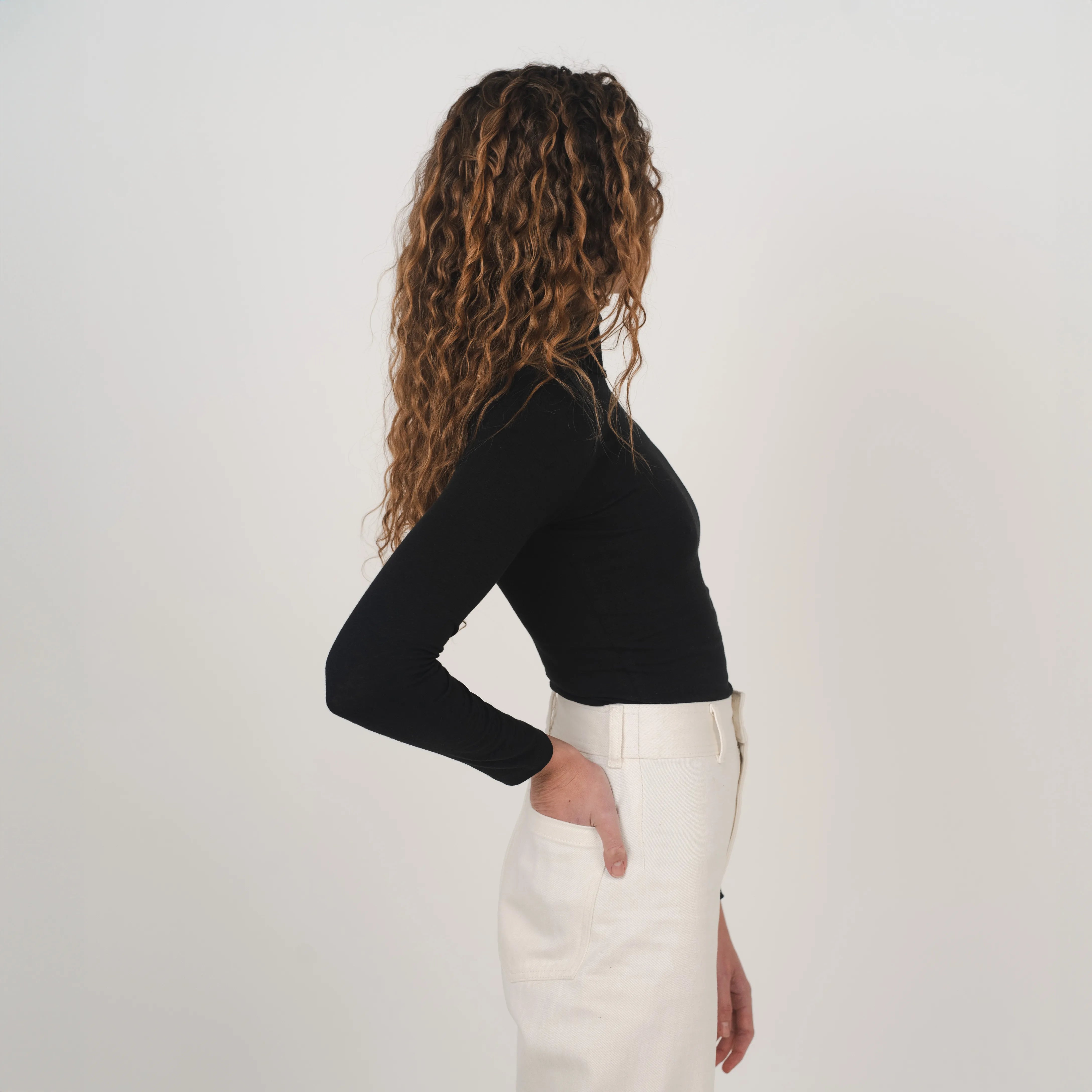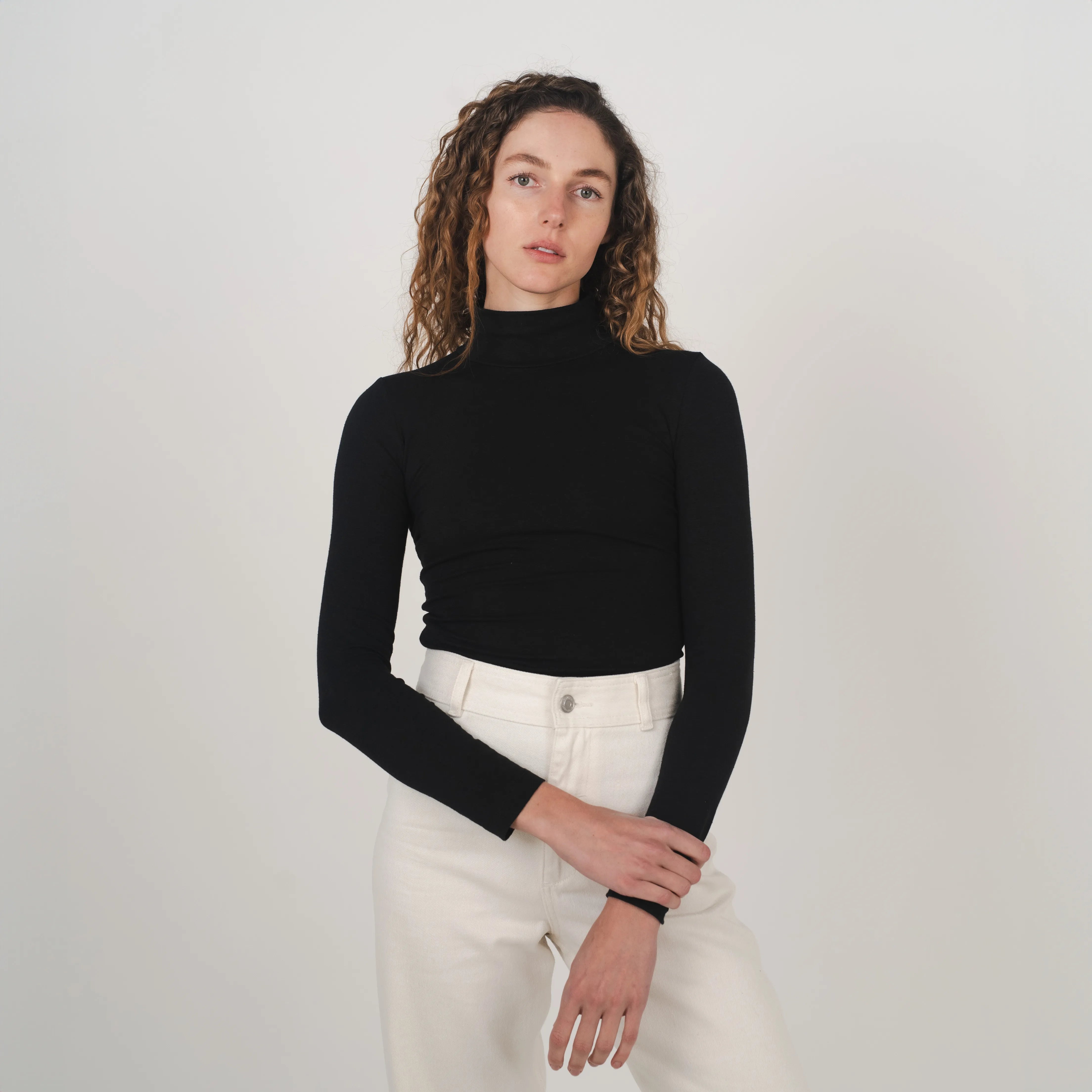 Crafted from breathable hemp and organic cotton with 5% spandex for added stretch, our mock neck long sleeve skivvy top is the perfect base layer. Featuring a comfortable high mock neck and long line length, it’s ideal for layering and designed for all day cool weather comfort.