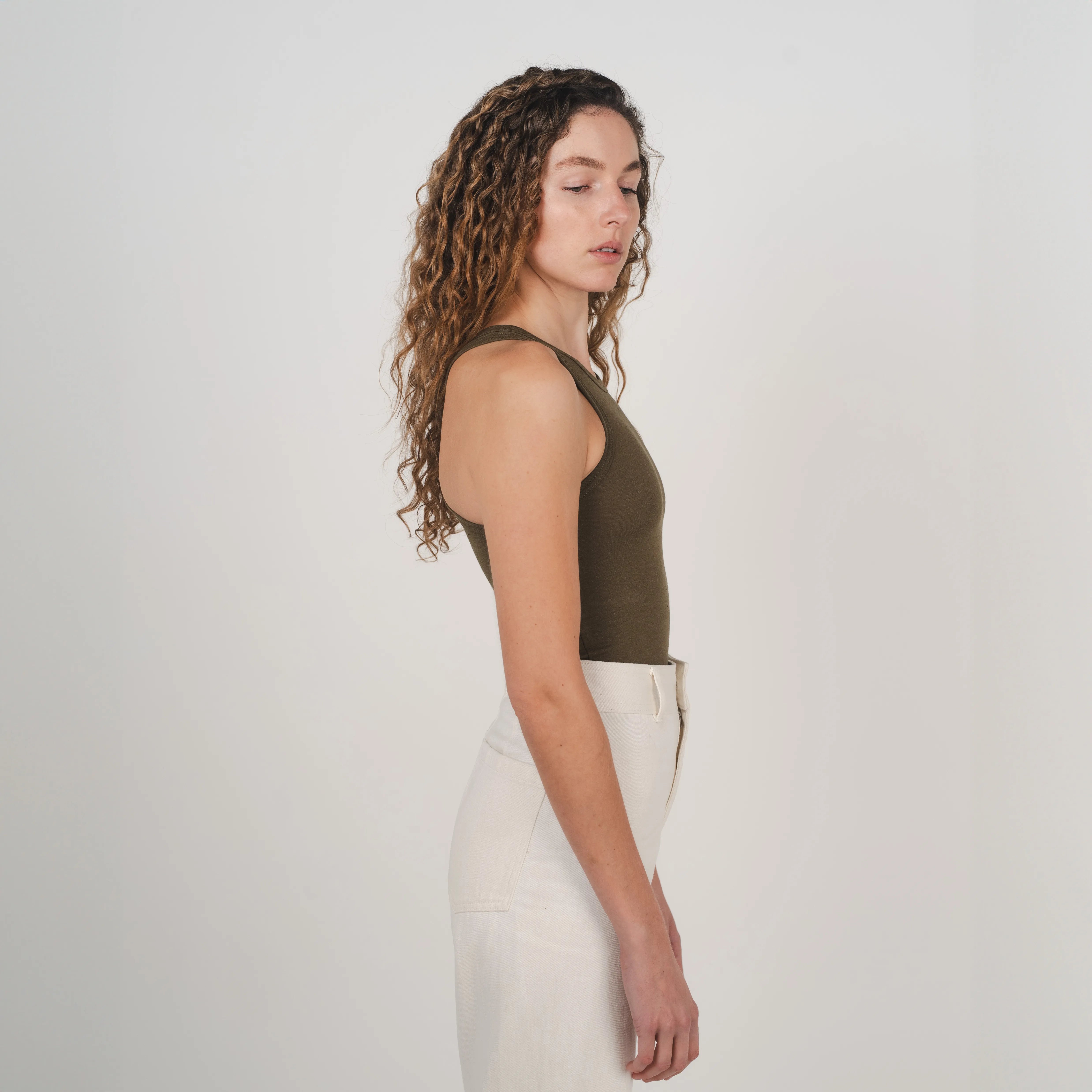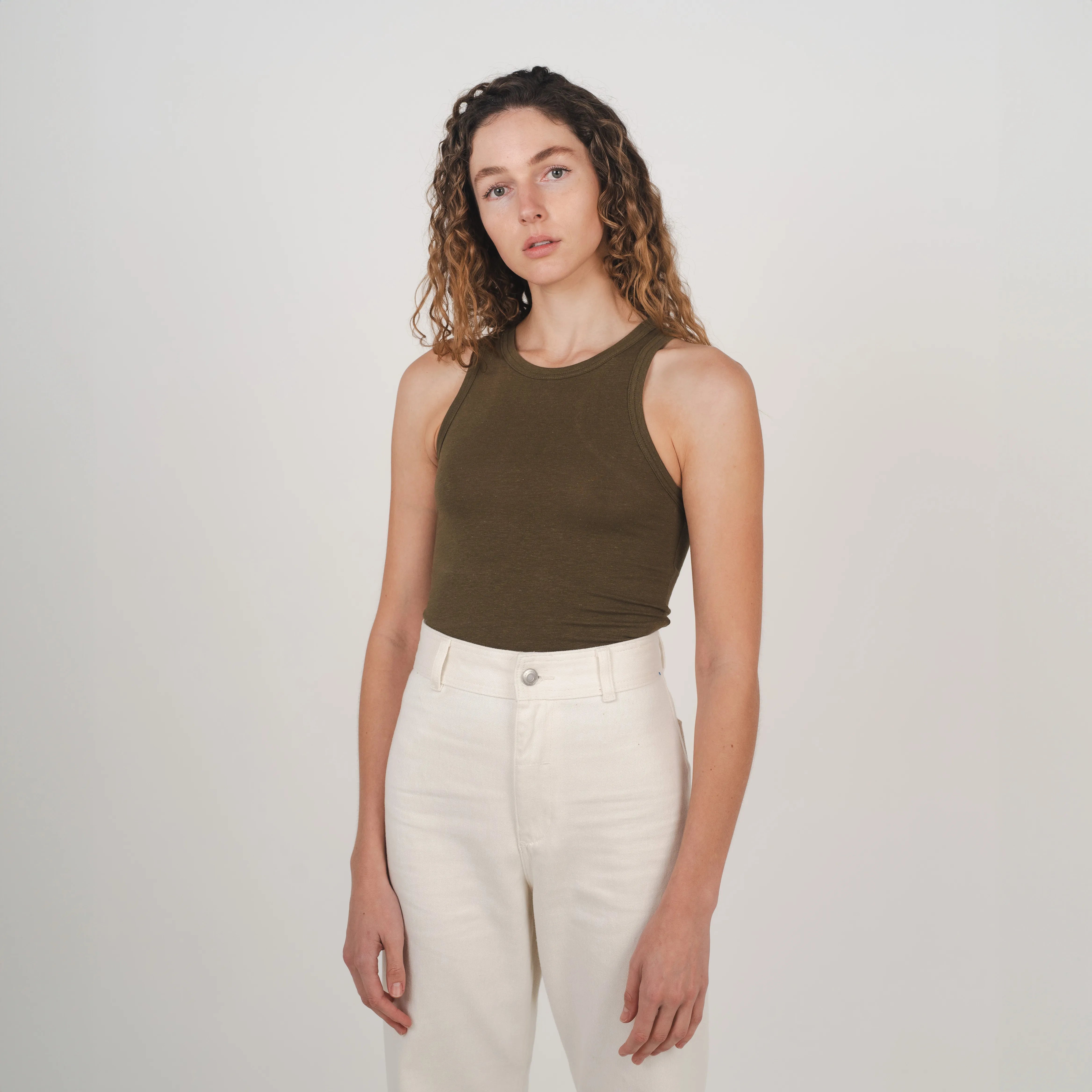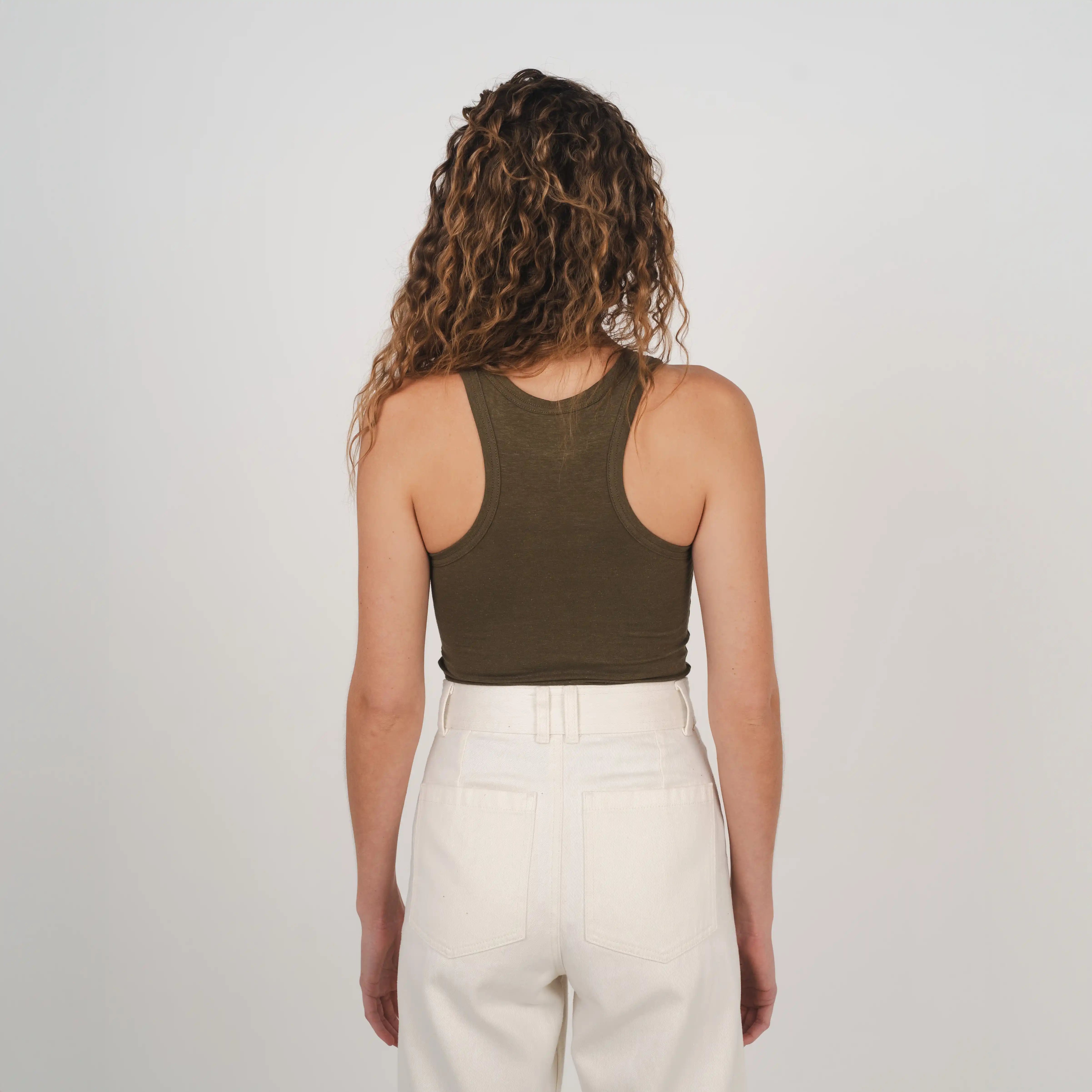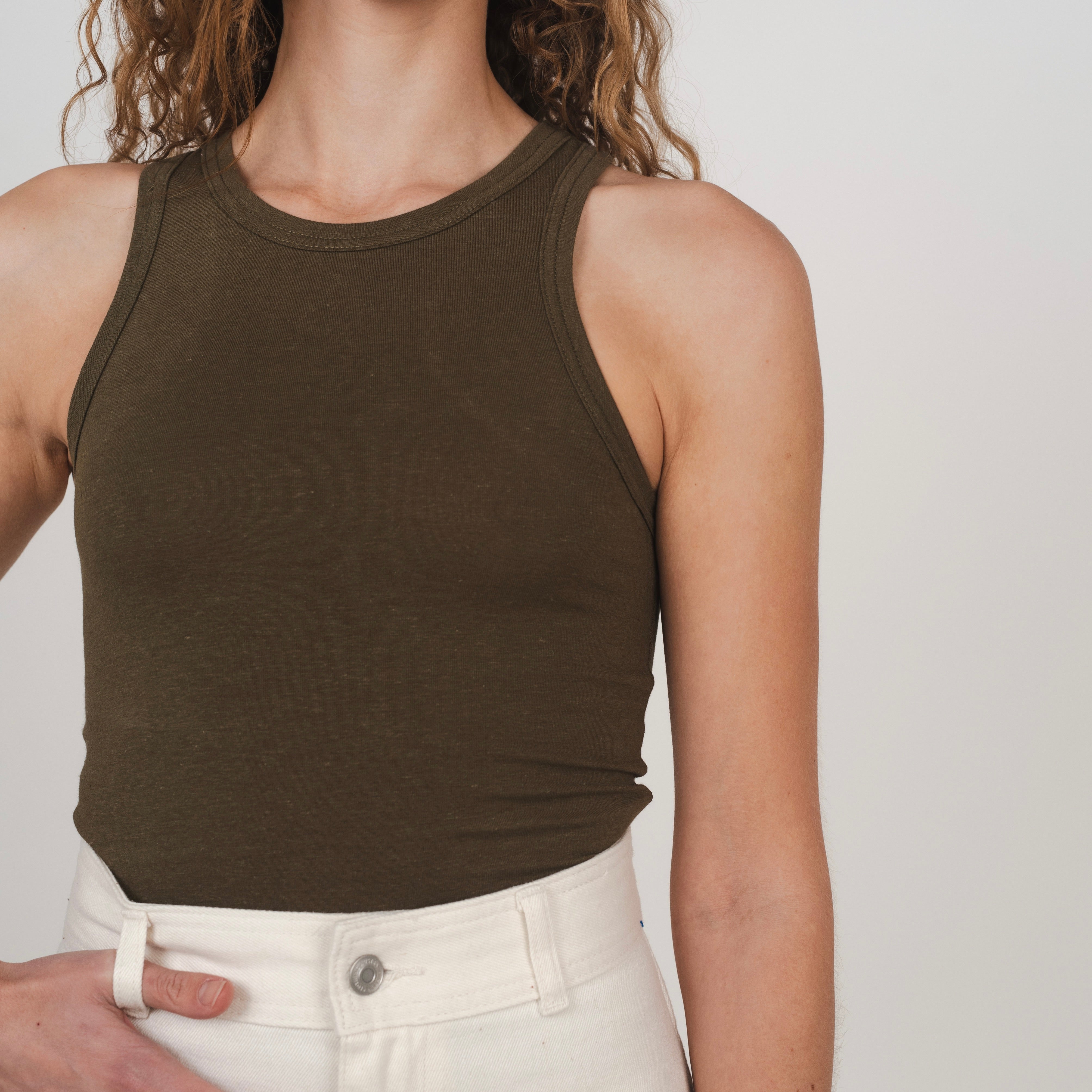 A staple piece made from breathable hemp and organic cotton with 5% spandex for added stretch and comfort. Perfect for layering or wearing on its own, the stretch tank is a classic racerback shape, featuring a round neckline and mid length.