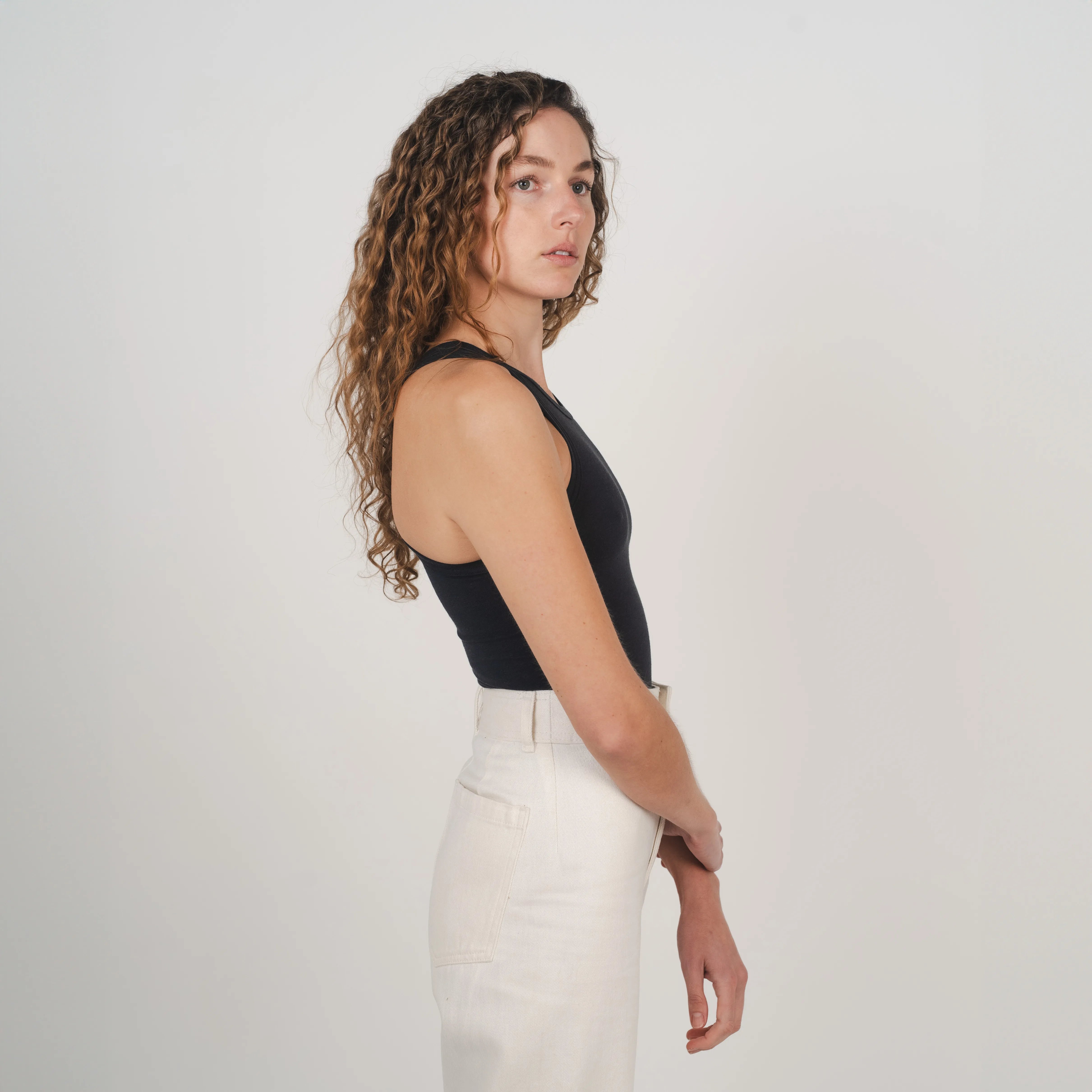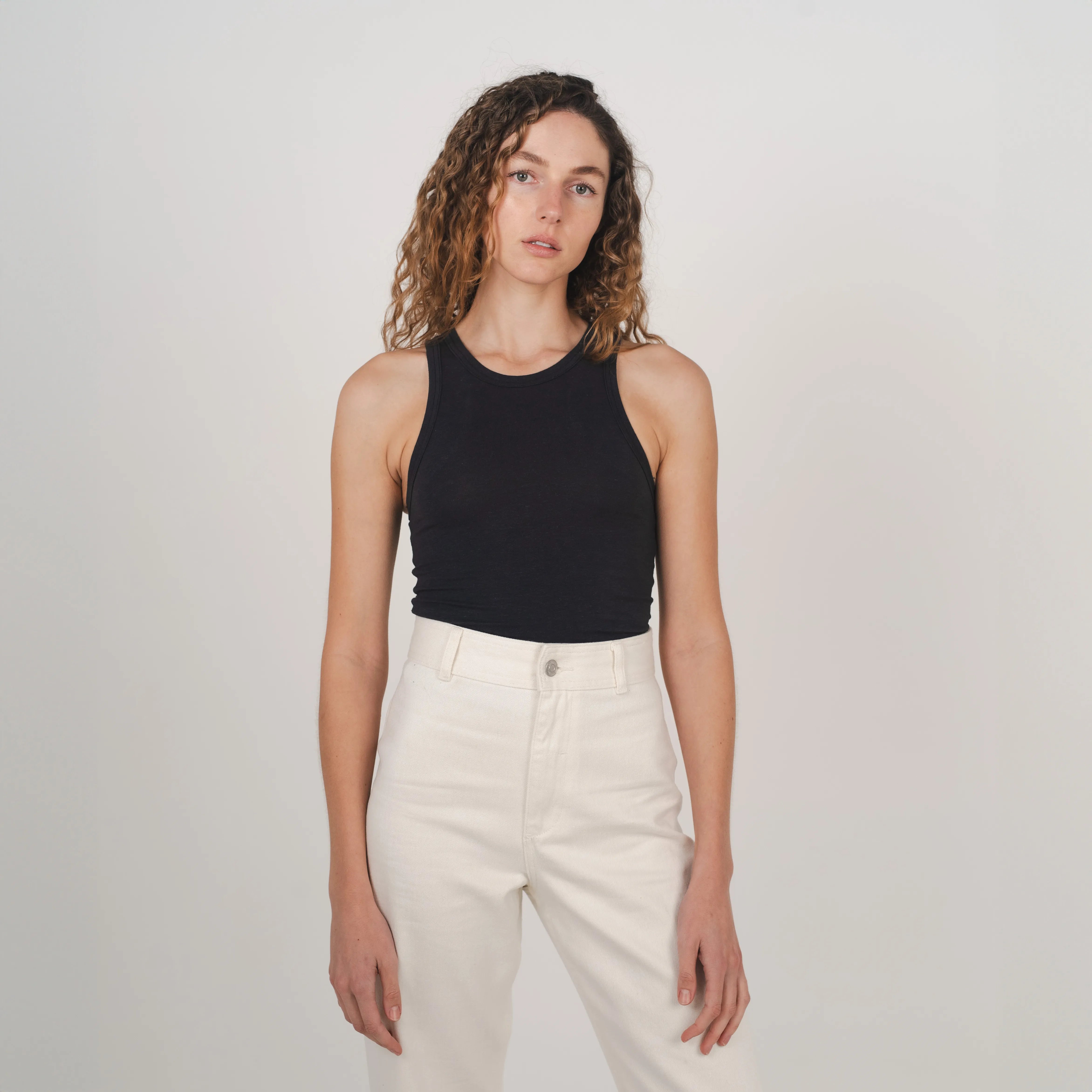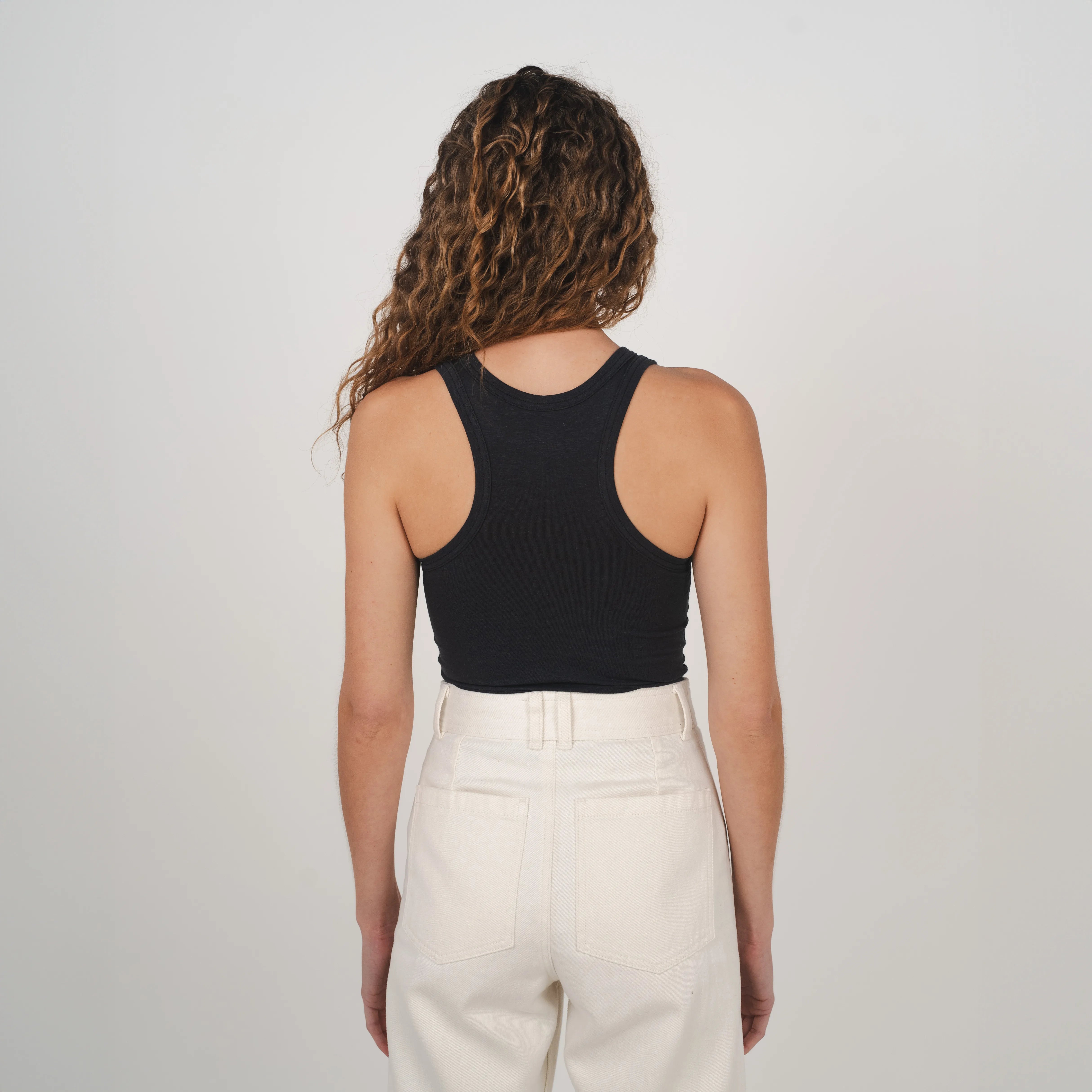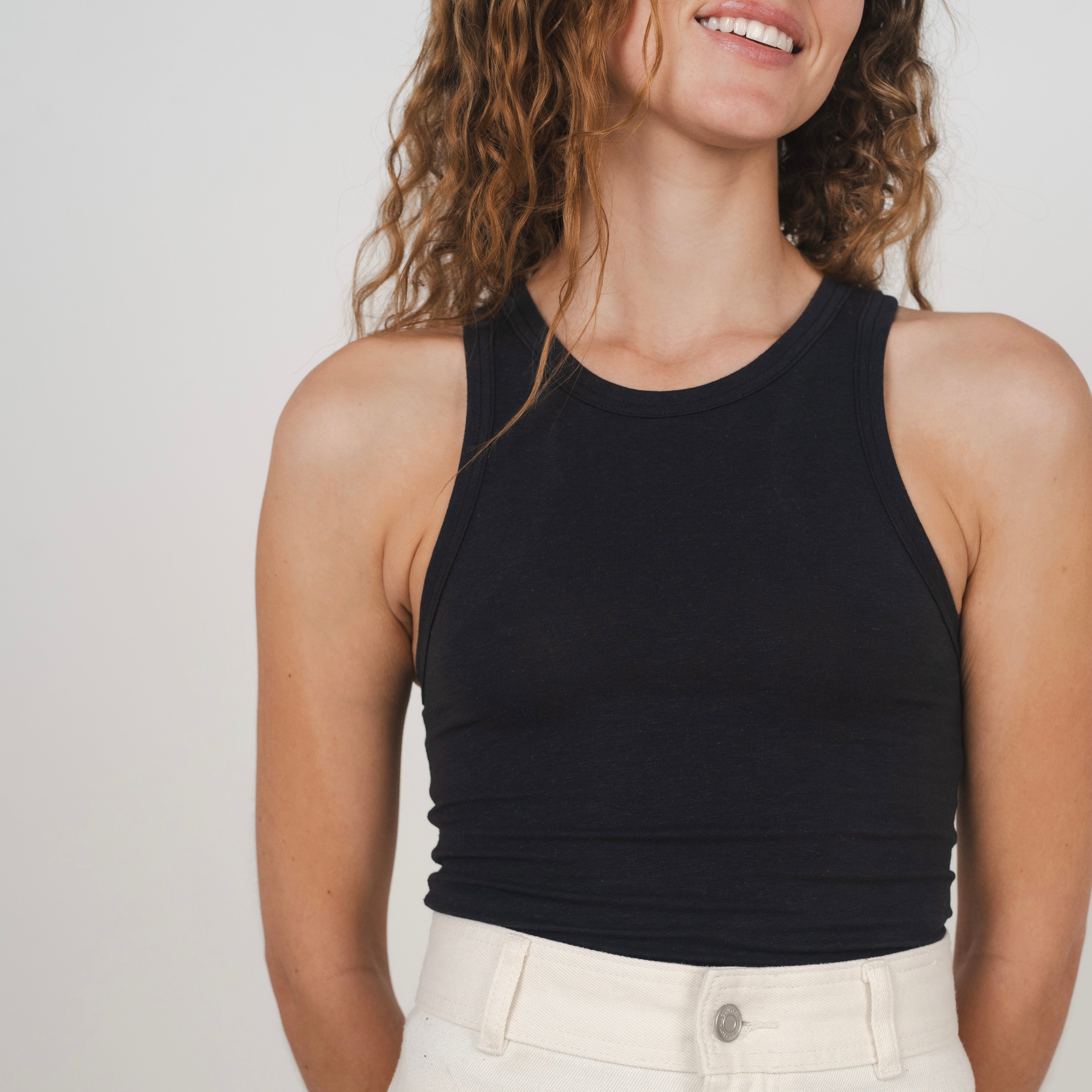 A staple piece made from breathable hemp and organic cotton with 5% spandex for added stretch and comfort. Perfect for layering or wearing on its own, the stretch tank is a classic racerback shape, featuring a round neckline and mid length.
