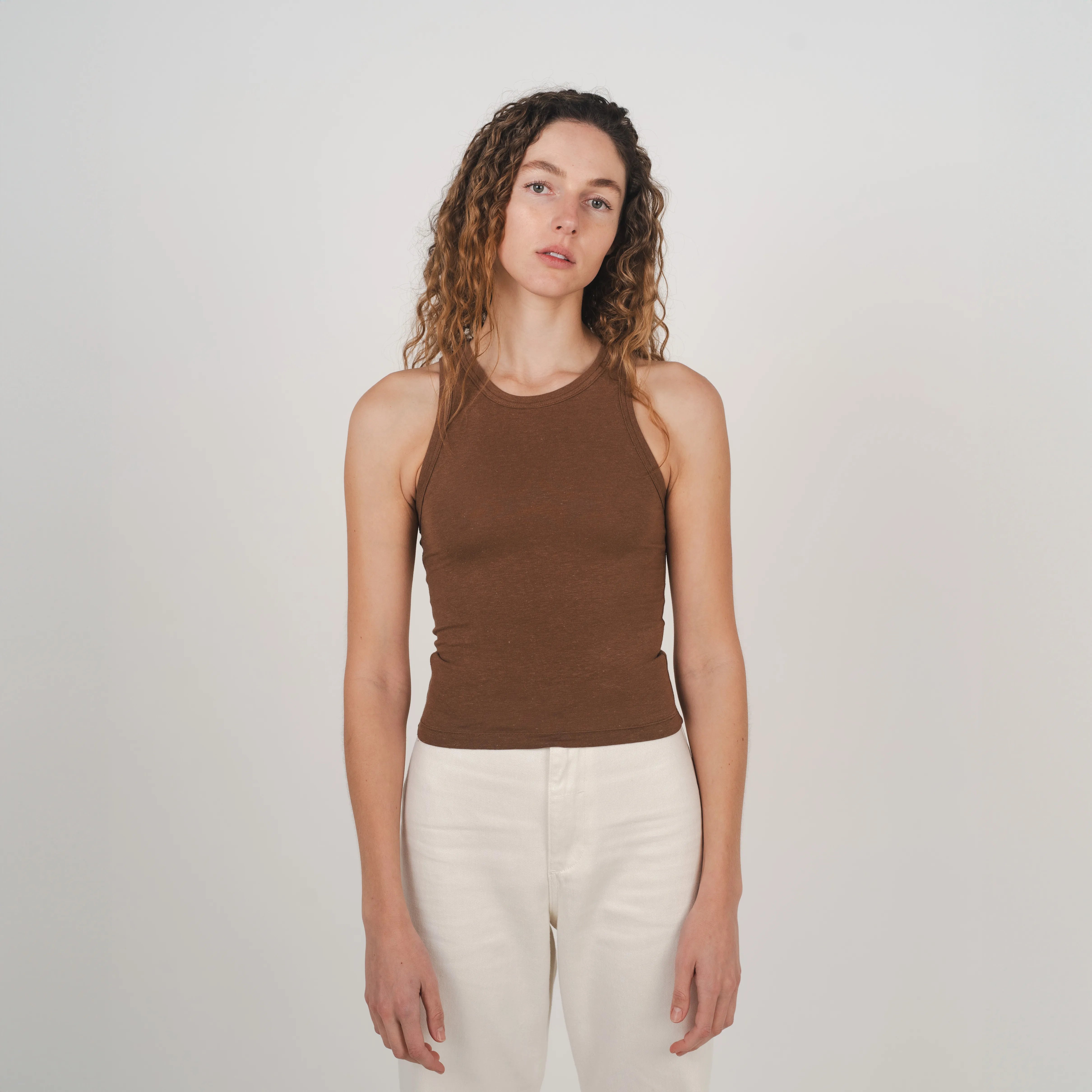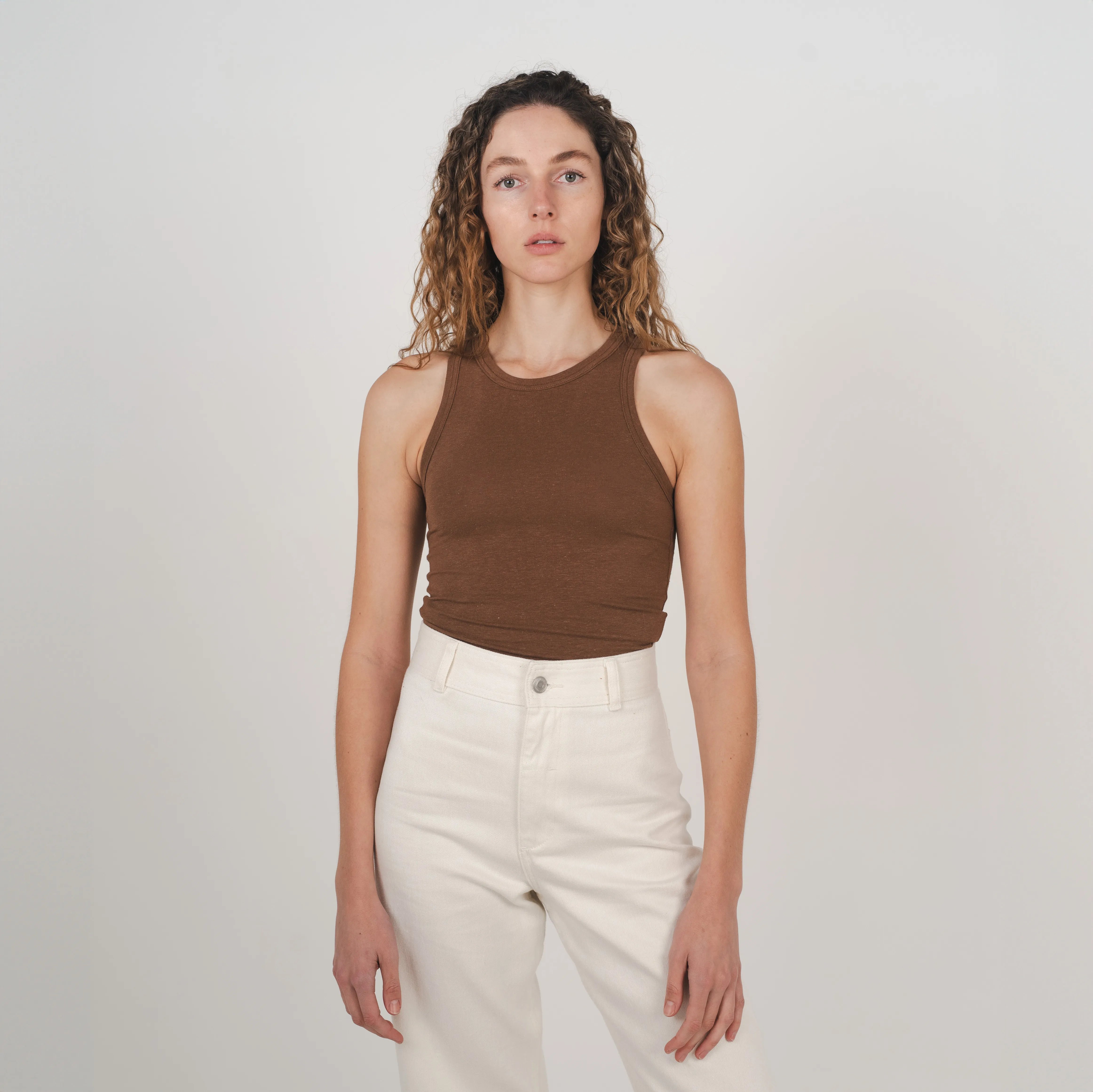 A staple piece made from breathable hemp and organic cotton with 5% spandex for added stretch and comfort. Perfect for layering or wearing on its own, the stretch tank is a classic racerback shape, featuring a round neckline and mid length.