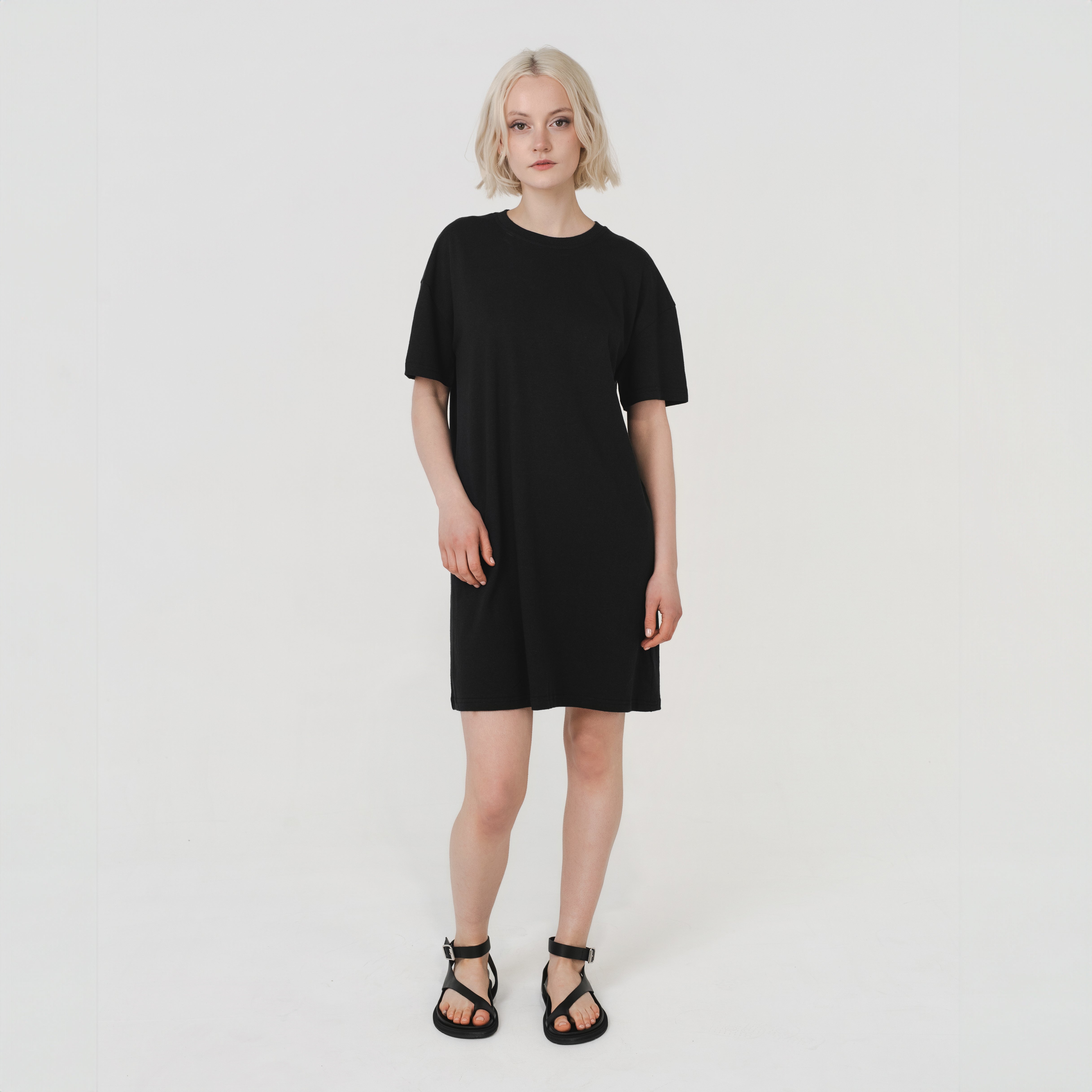 Our Mini T-shirt Dress is made from a soft and breathable mid-weight hemp and organic cotton jersey. It features a boxy silhouette, short sleeves, round neckline, and an above-the-knee fit. Designed for effortless everyday wear.