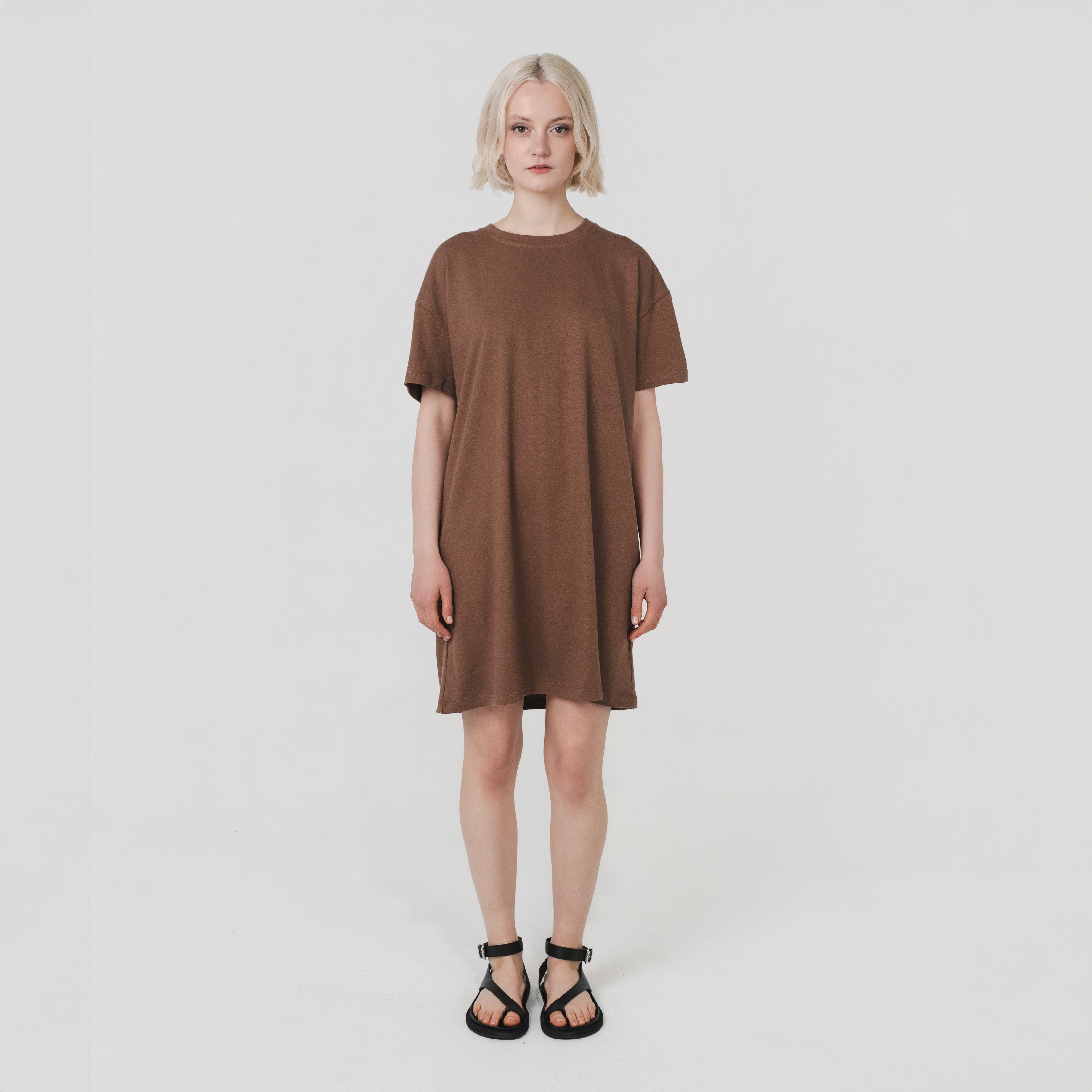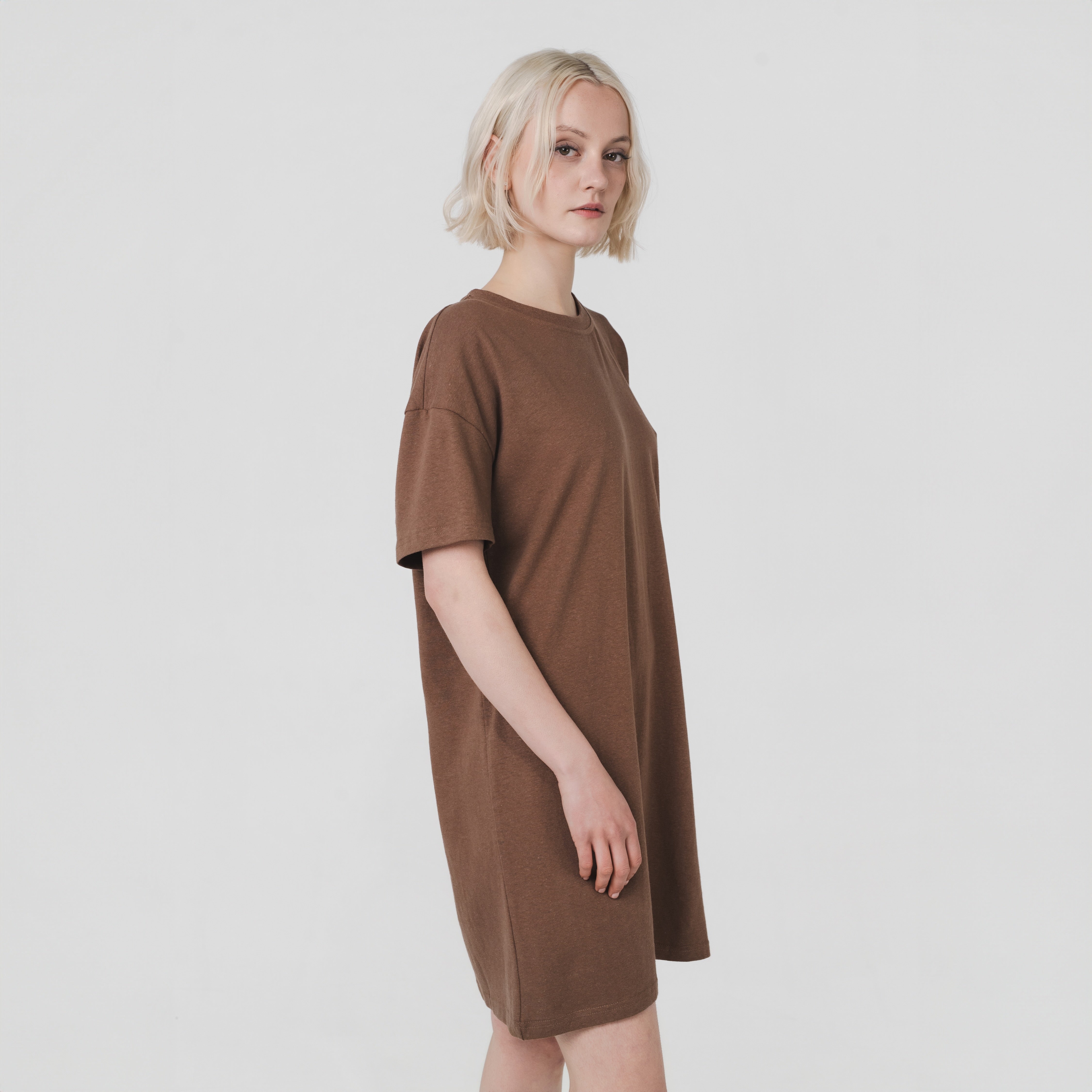 Our Mini T-shirt Dress is made from a soft and breathable mid-weight hemp and organic cotton jersey. It features a boxy silhouette, short sleeves, round neckline, and an above-the-knee fit. Designed for effortless everyday wear.