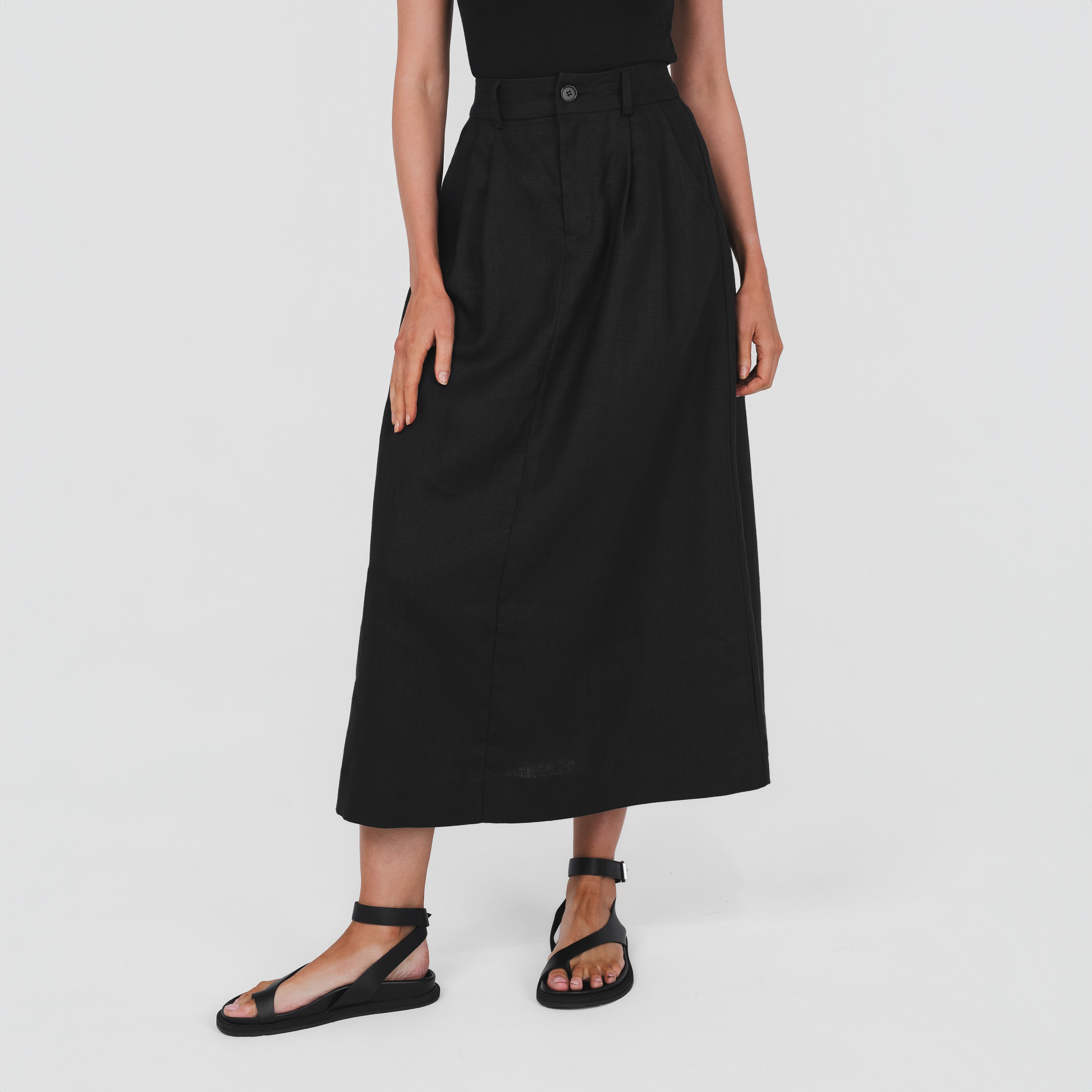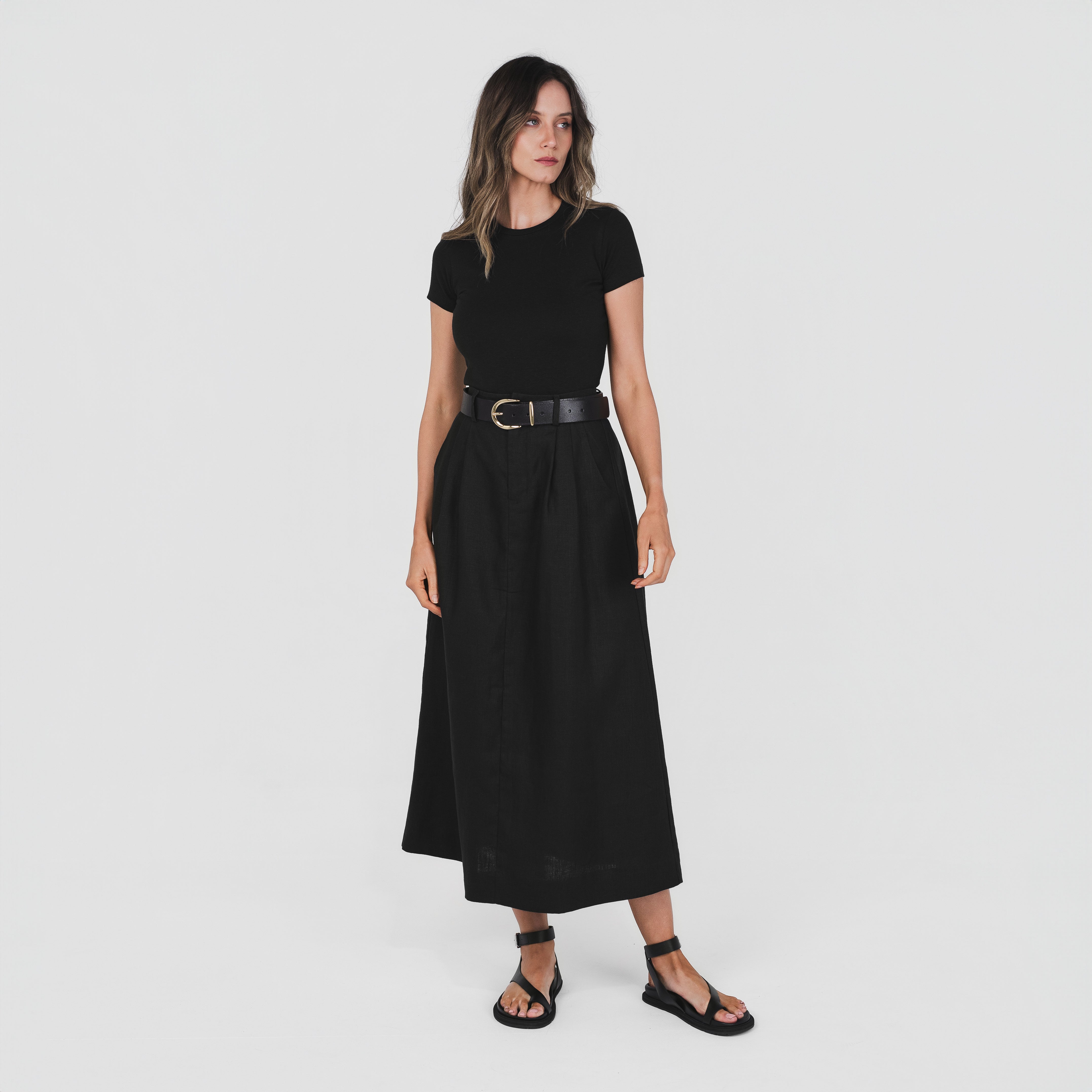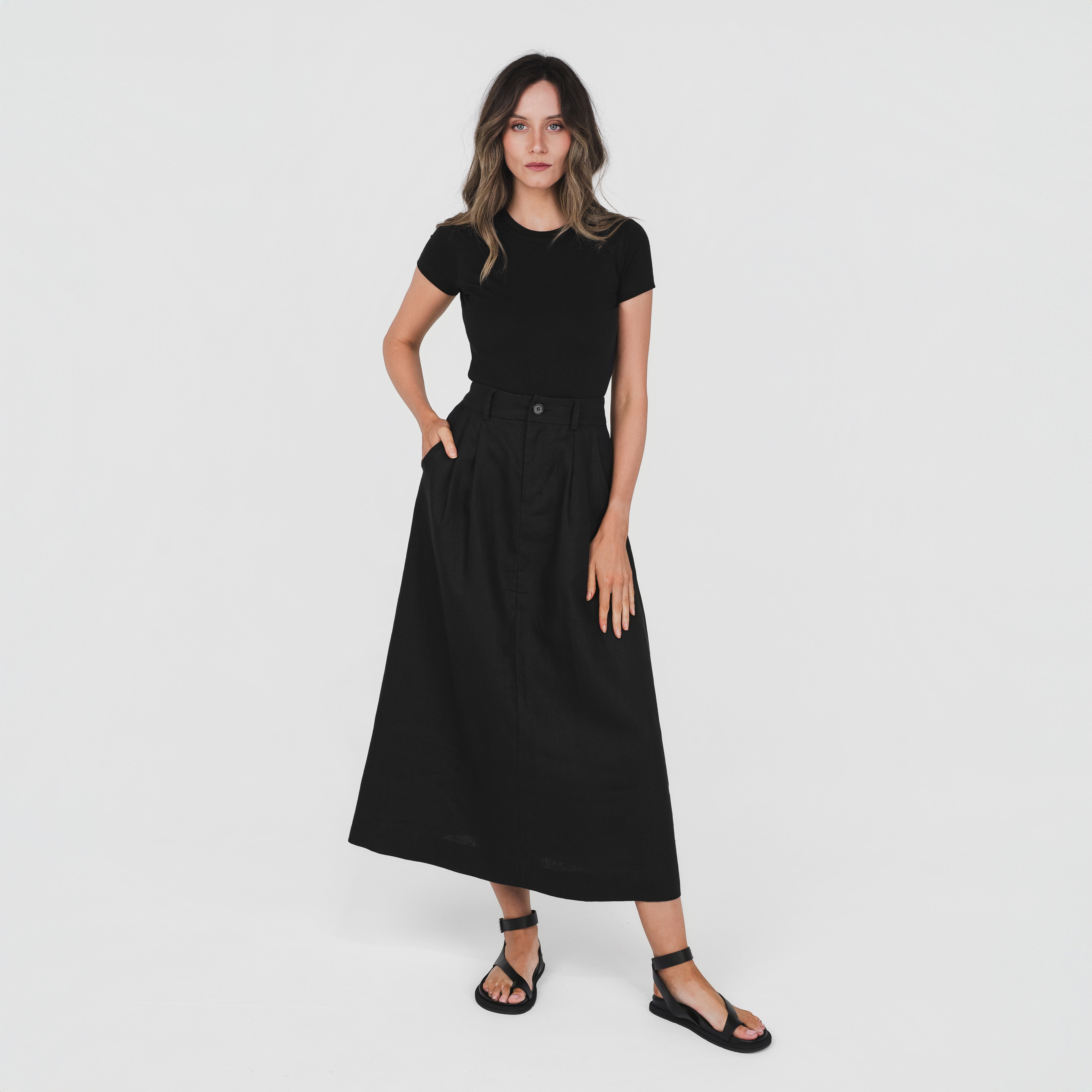 Crafted from pure 100% hemp, the Tailored Skirt combines structure with a soft, natural texture. It features a high waist, front pleats, and an A-line silhouette that falls to a flattering midi length. Finished with belt loops and side seam pockets for everyday functionality. It’s a versatile, timeless piece made for everyday wear; day to night, work to weekend.