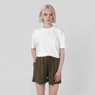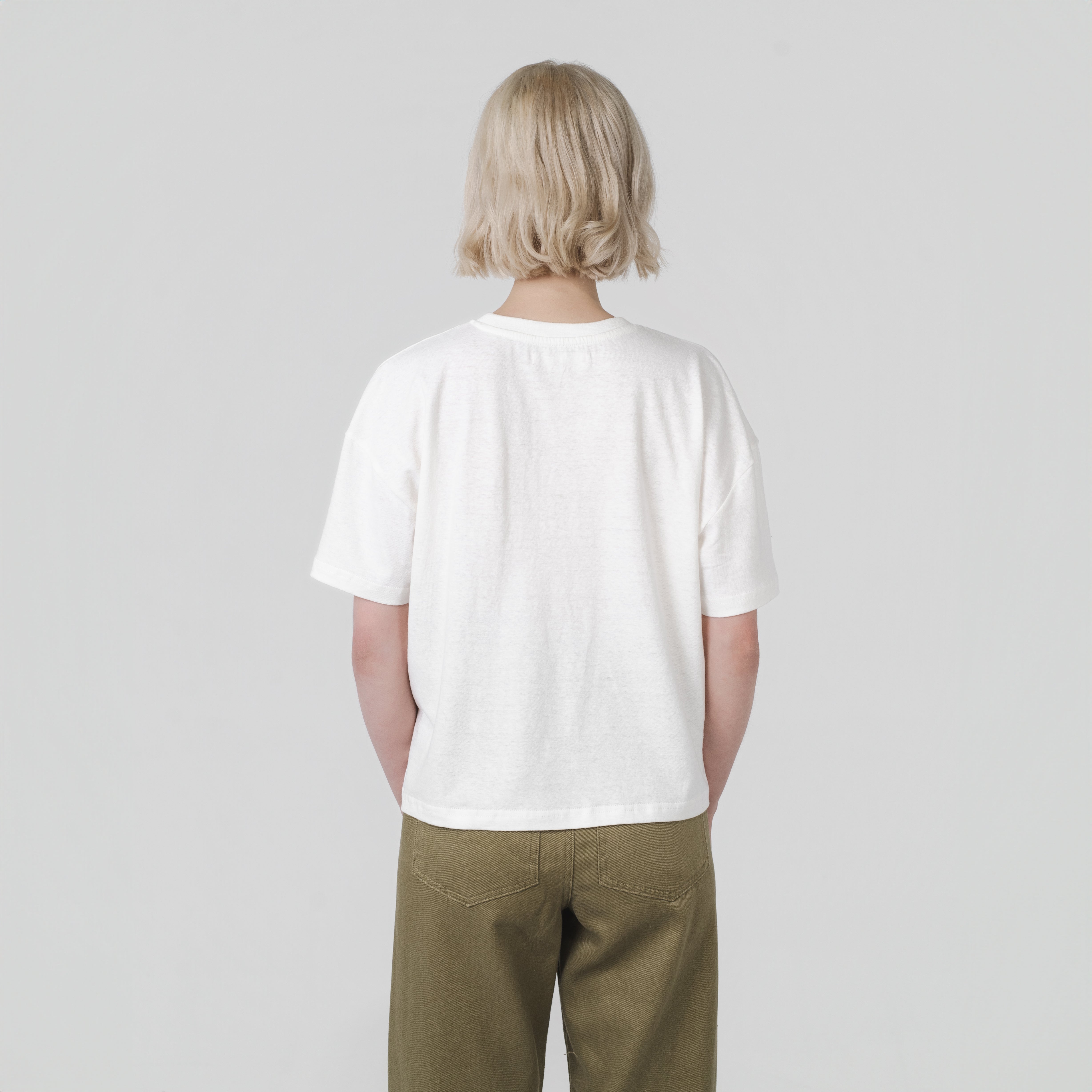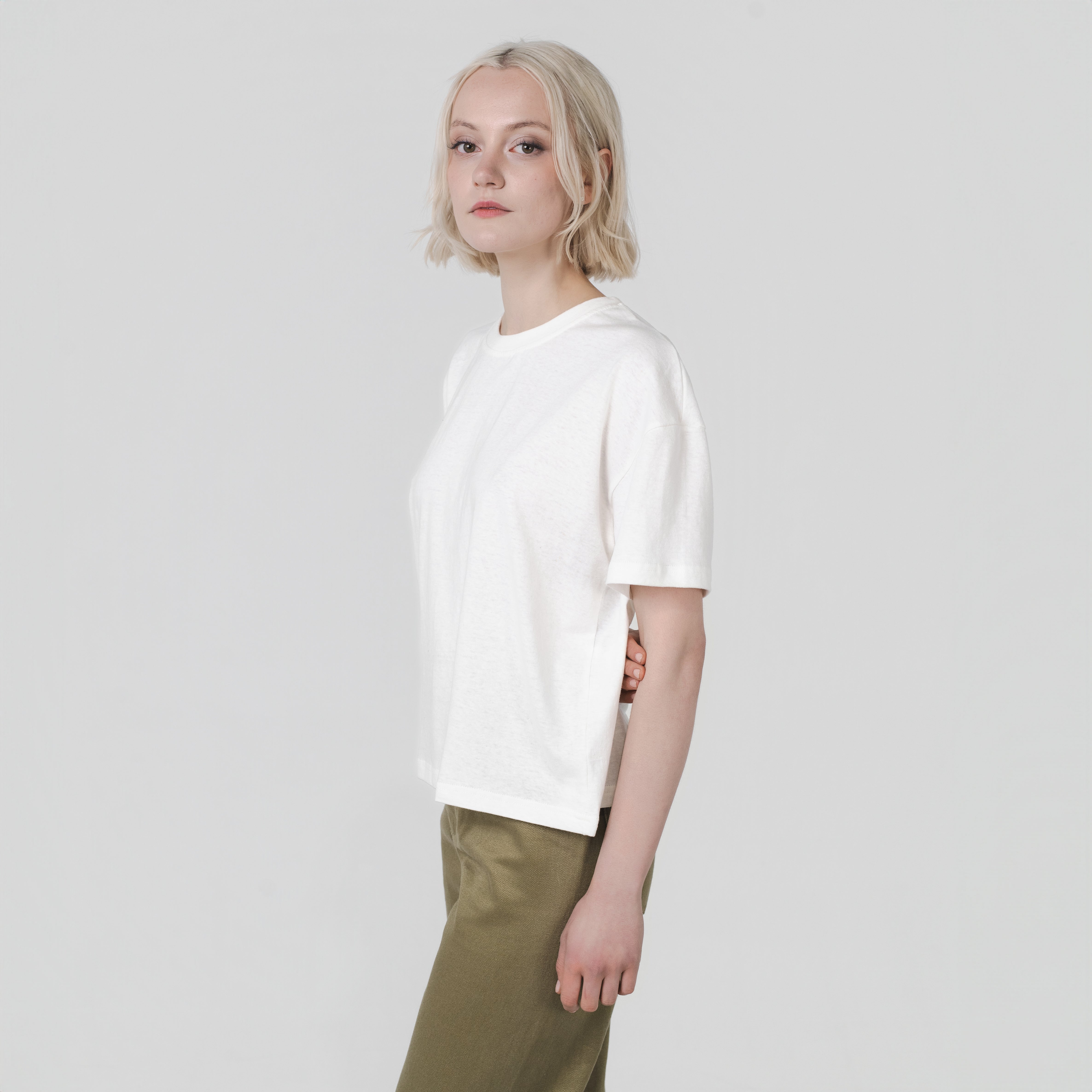 The women's Boxy Tee is made from a soft and breathable mid-weight hemp and organic cotton jersey. Designed with a mid-length cut, short sleeves, and a classic crew neckline, its a relaxed boxy silhouette that’s perfect for everyday wear. Pair with our Jersey Shorts for a coordinated, effortless look.