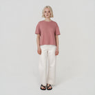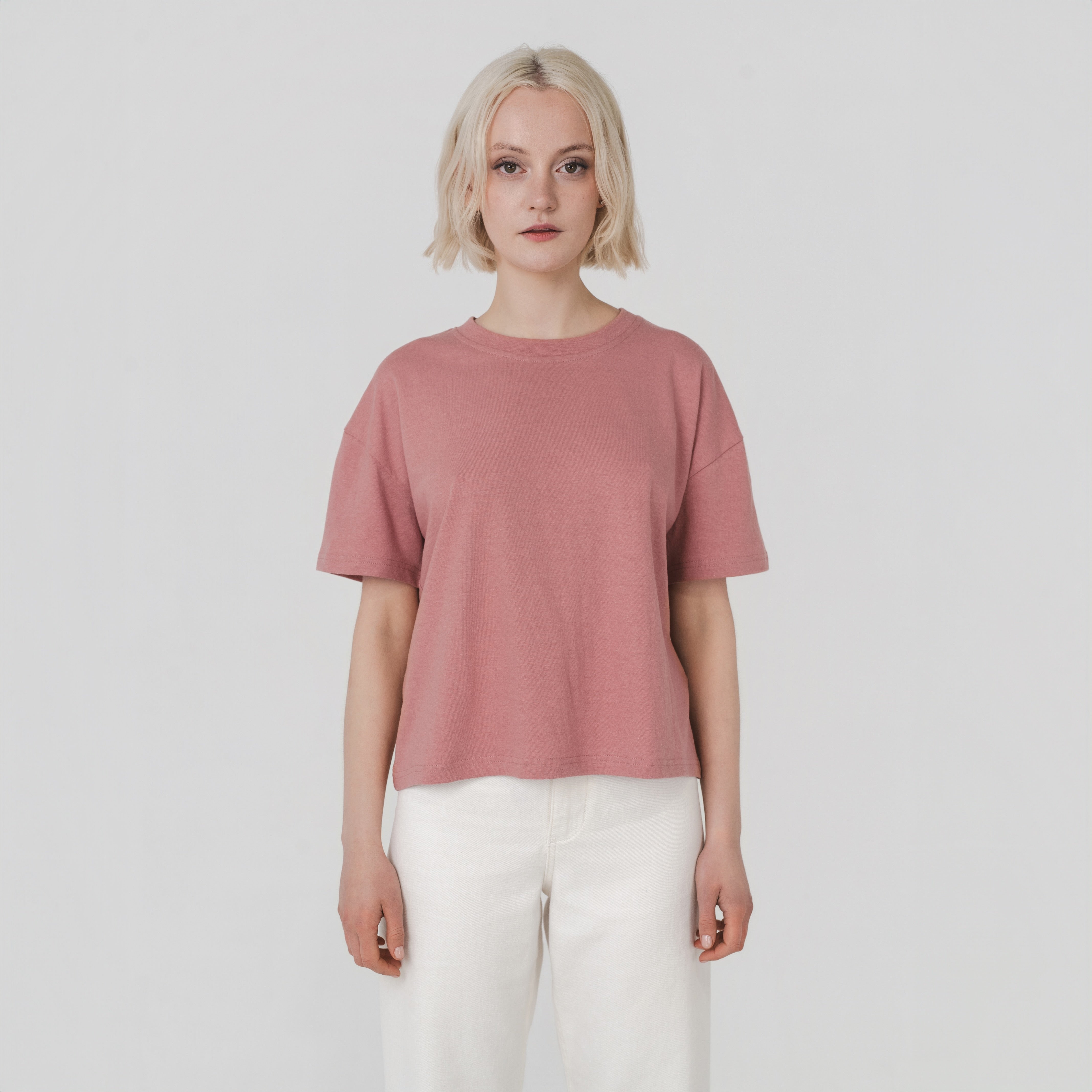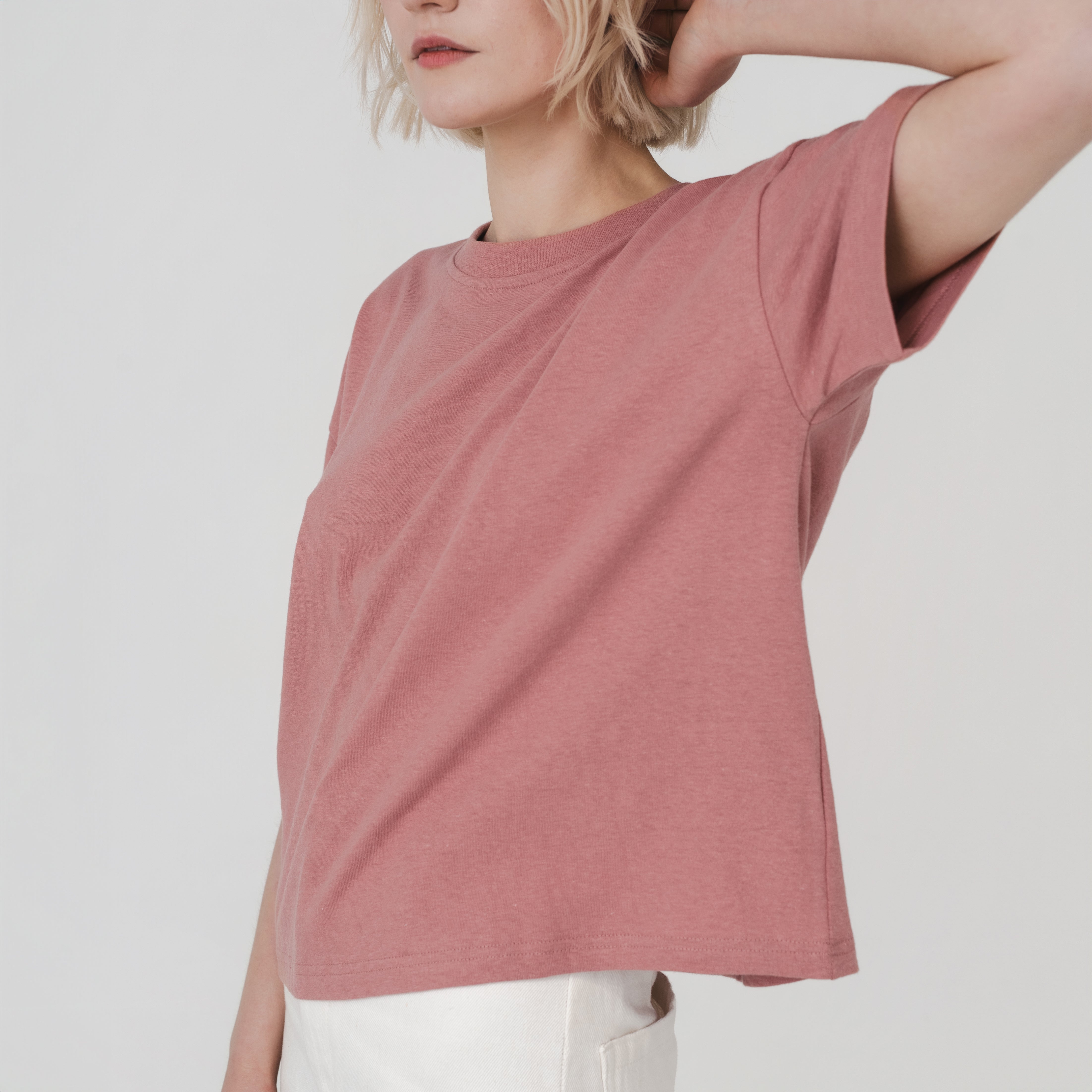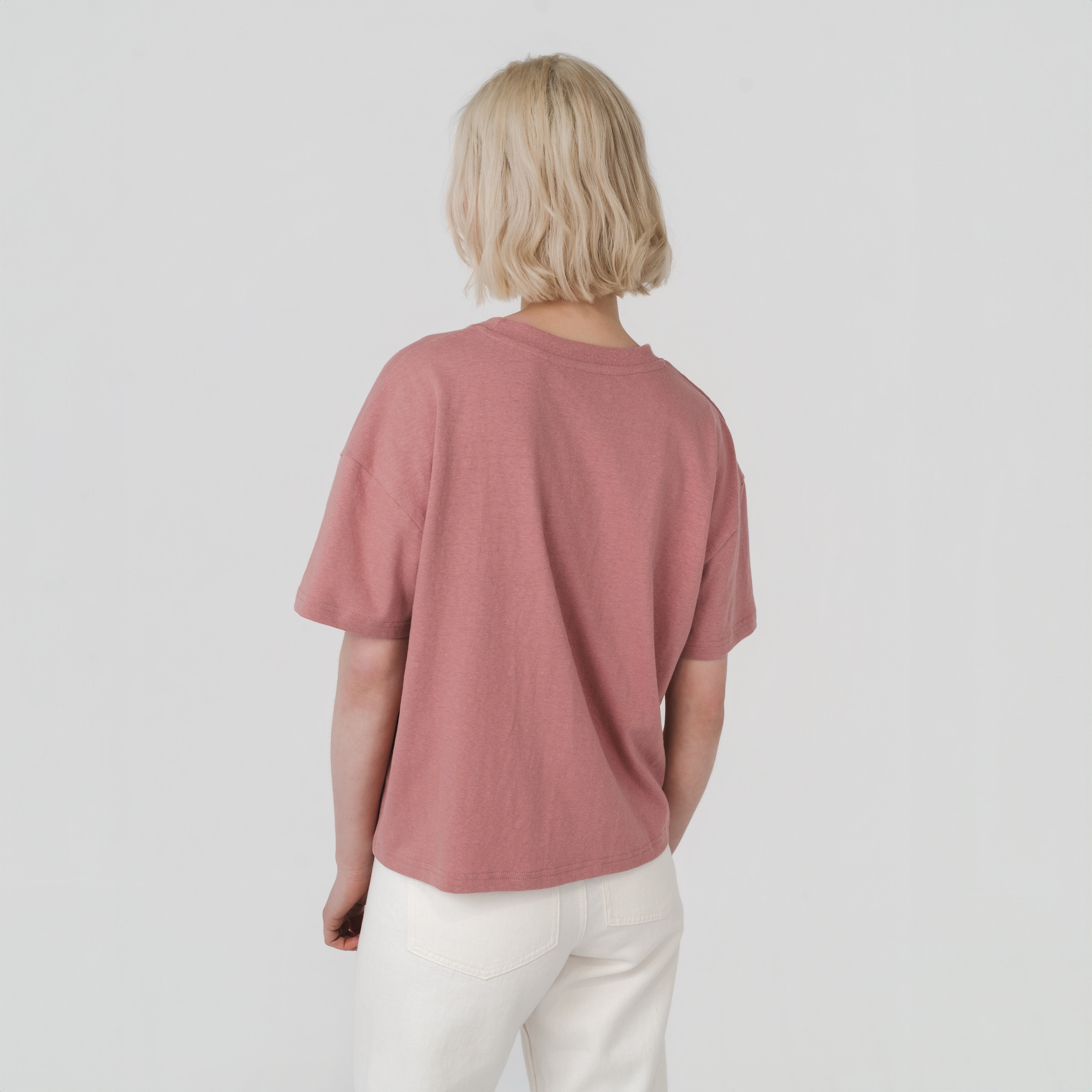 The women's Boxy Tee is made from a soft and breathable mid-weight hemp and organic cotton jersey. Designed with a mid-length cut, short sleeves, and a classic crew neckline, its a relaxed boxy silhouette that’s perfect for everyday wear. Pair with our matching Jersey Shorts for a coordinated, effortless look.